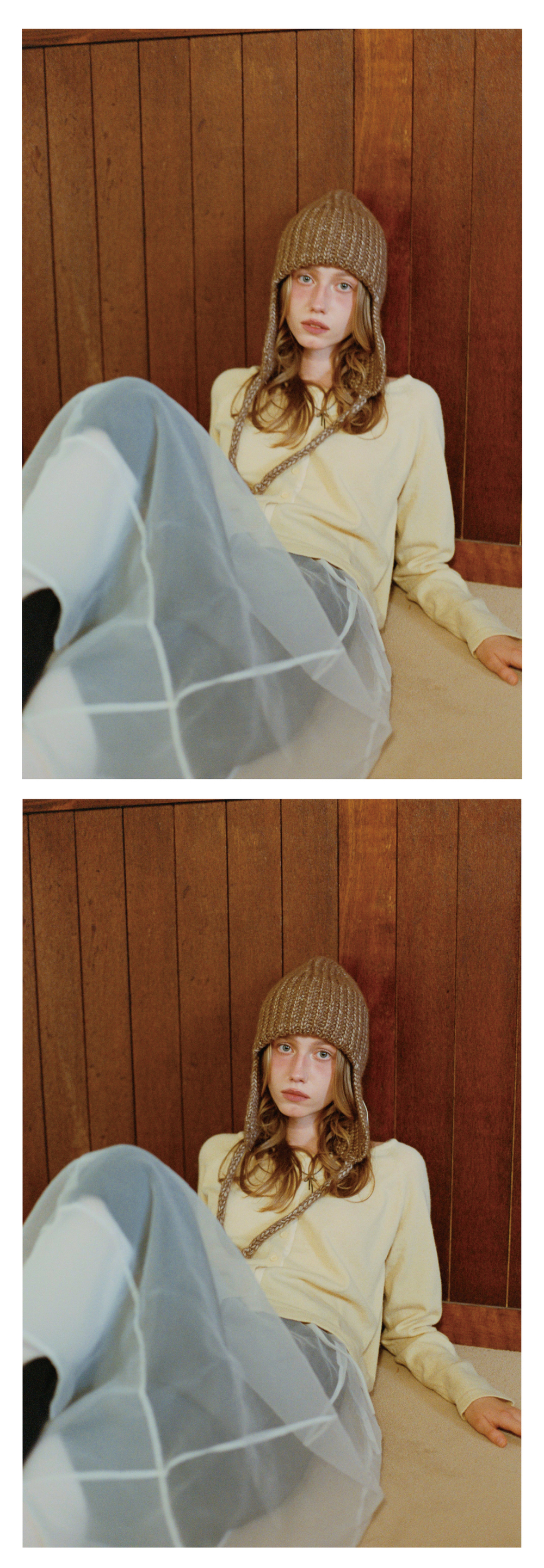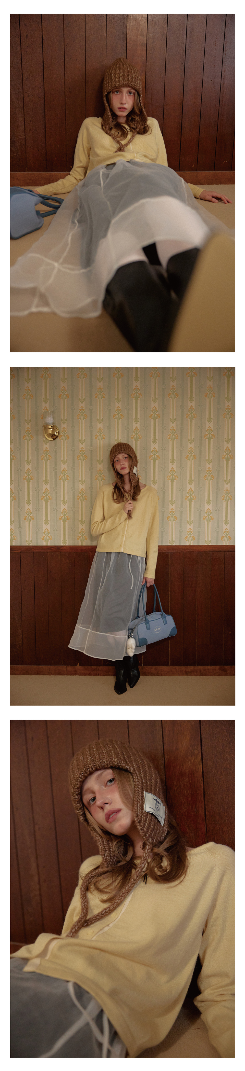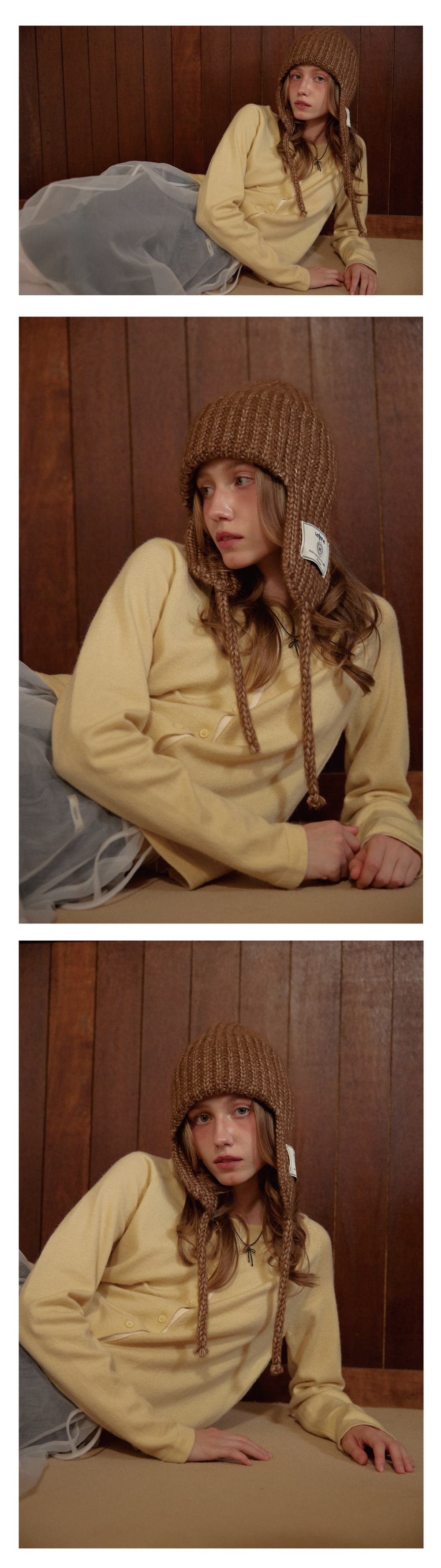 레터리 니트 트루퍼 햇 브라운