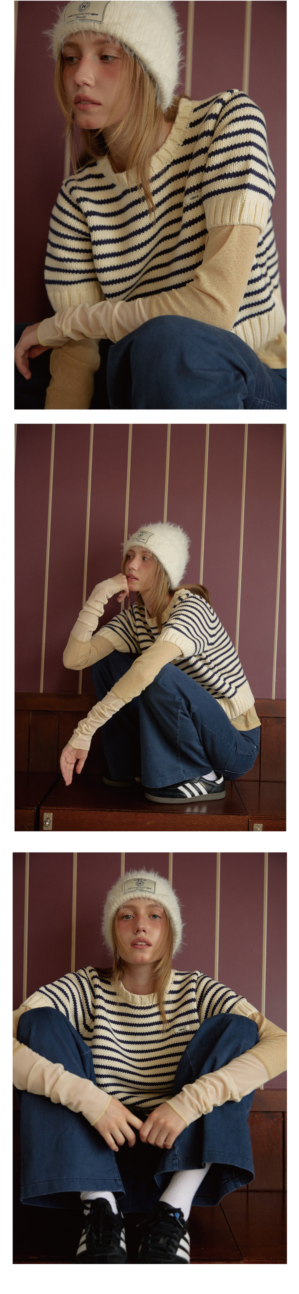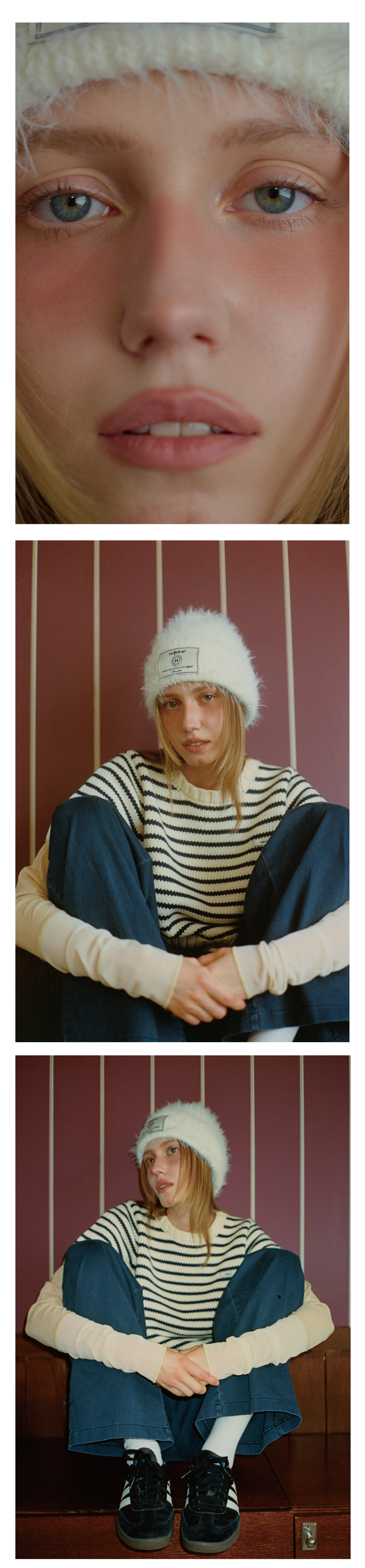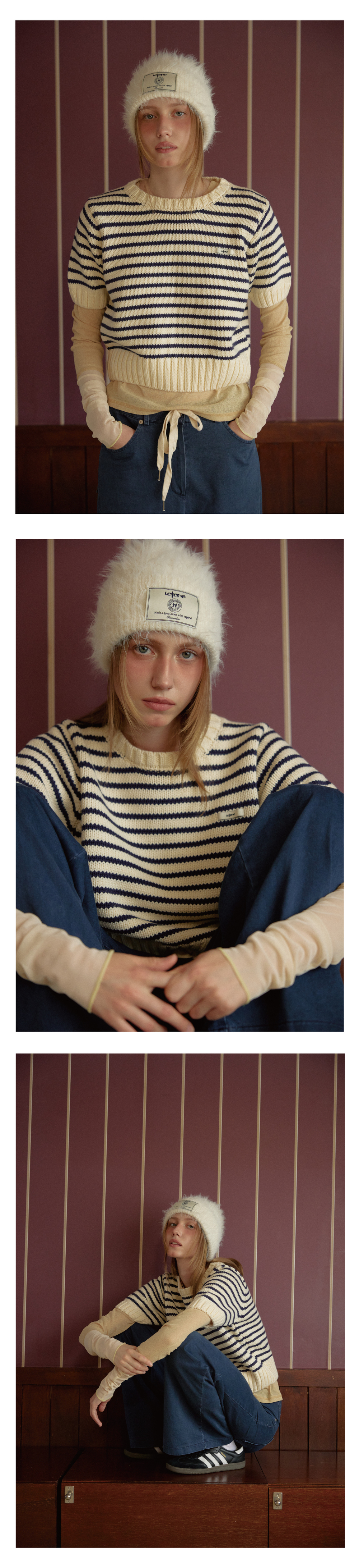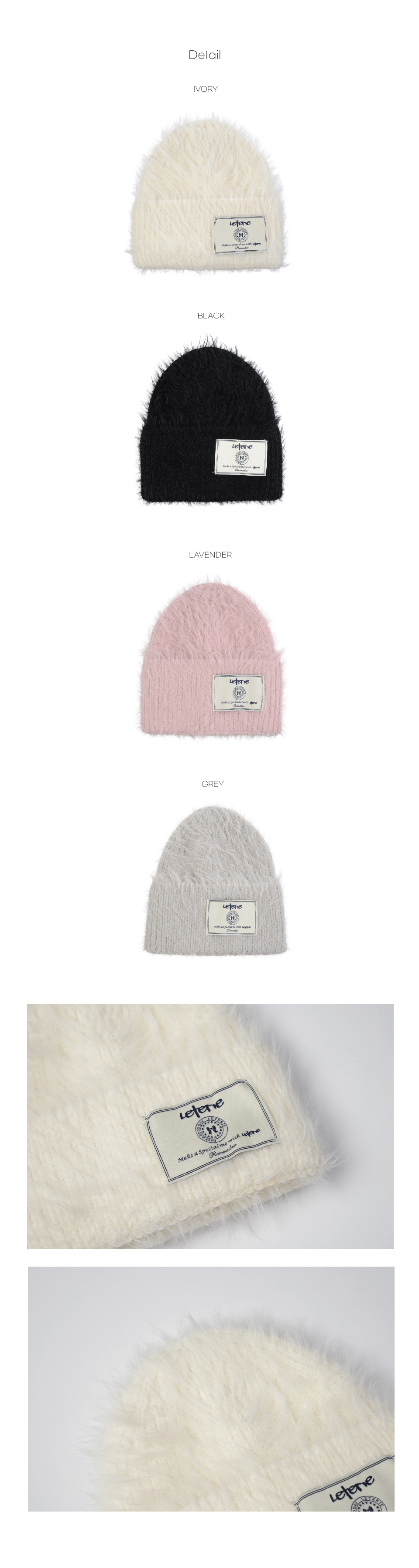 레터리 라벨 앙고라 비니 아이보리