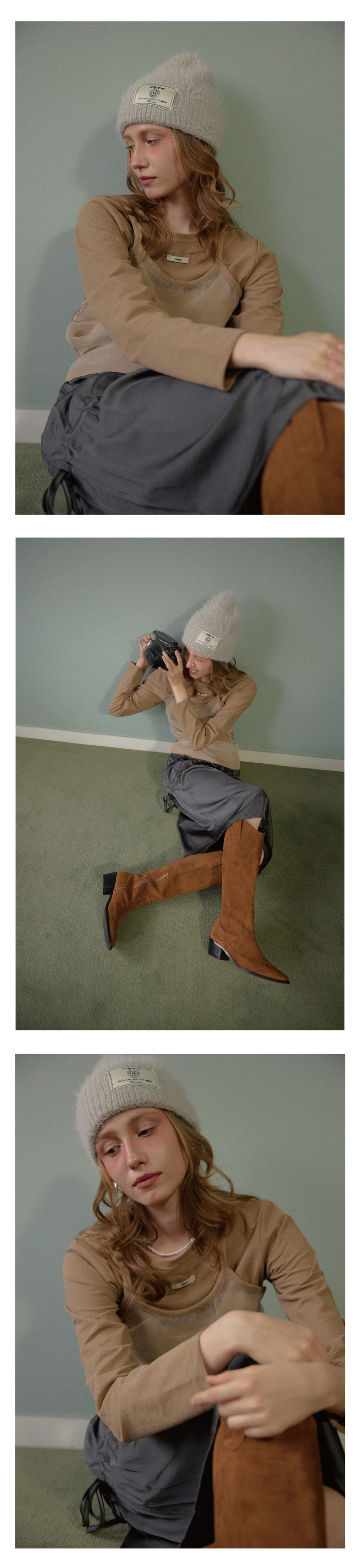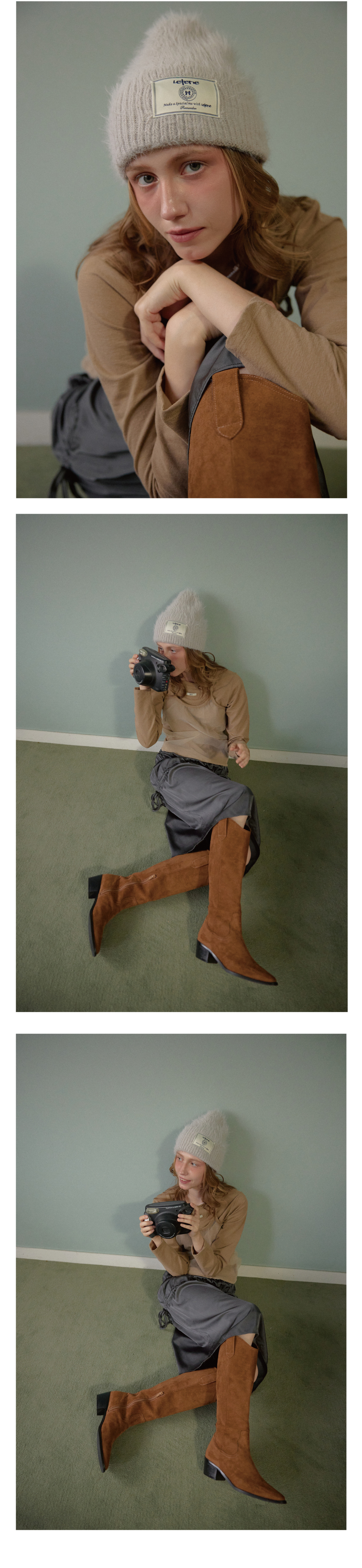 레터리 라벨 앙고라 비니 그레이