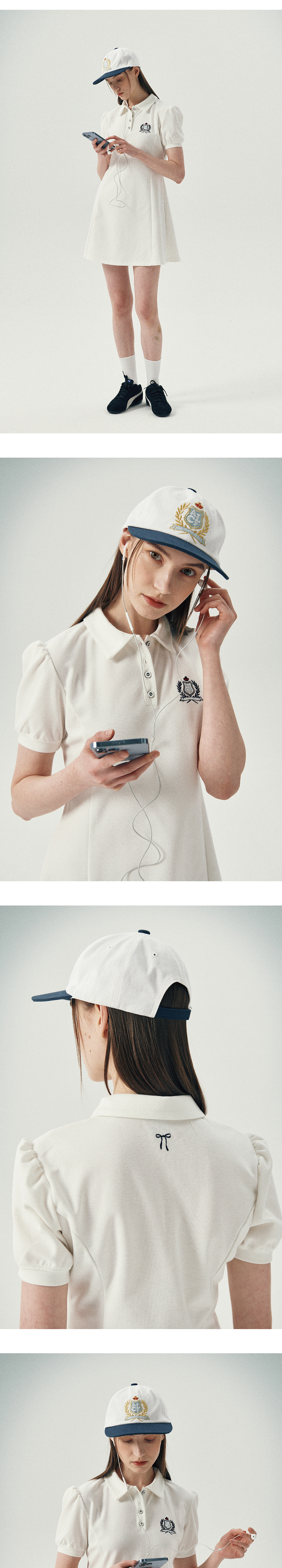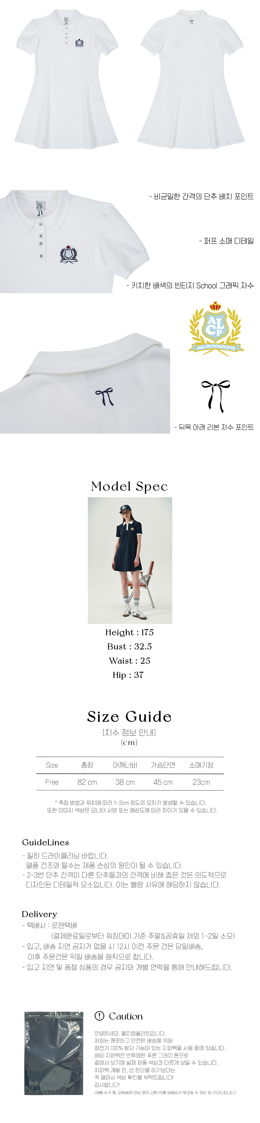 올인컴플리트 퍼프 플레어 피케 원피스 화이트