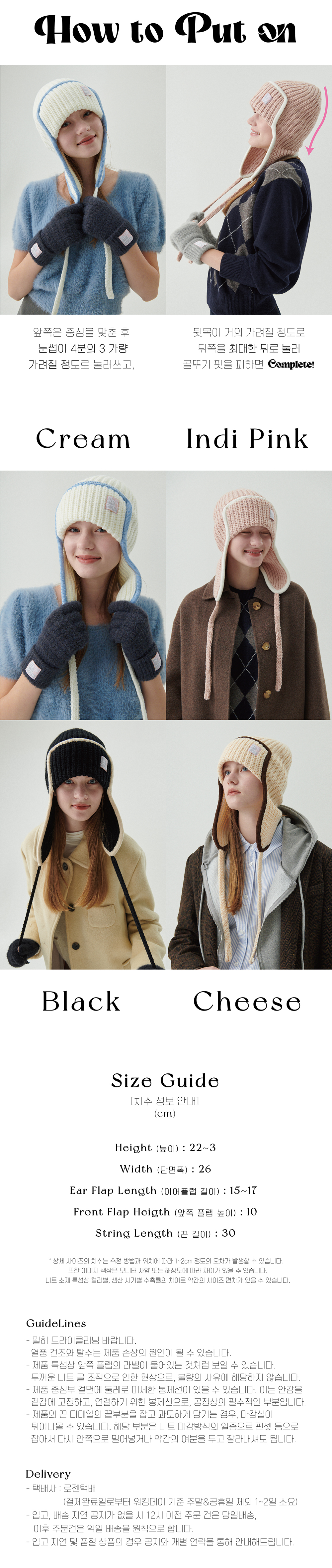 올인컴플리트 엣지 이어플랩 비니 인디핑크