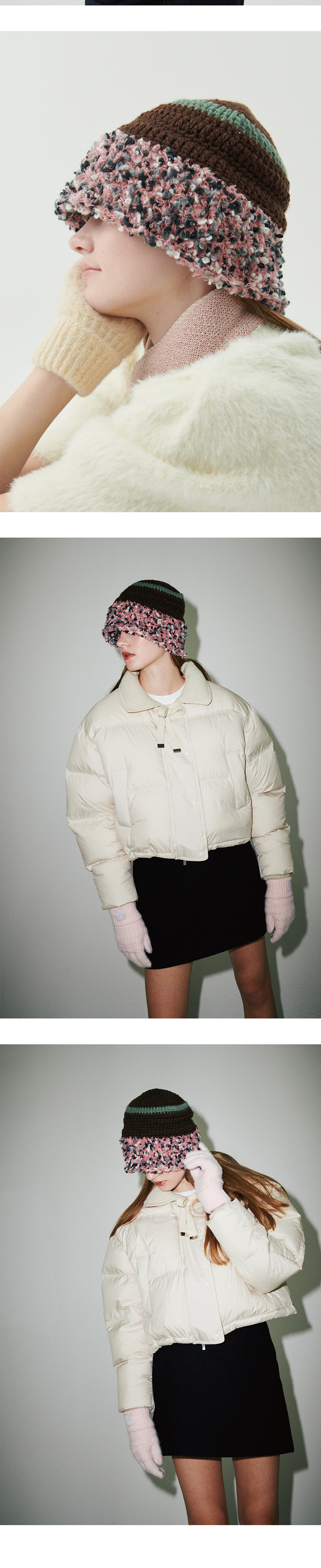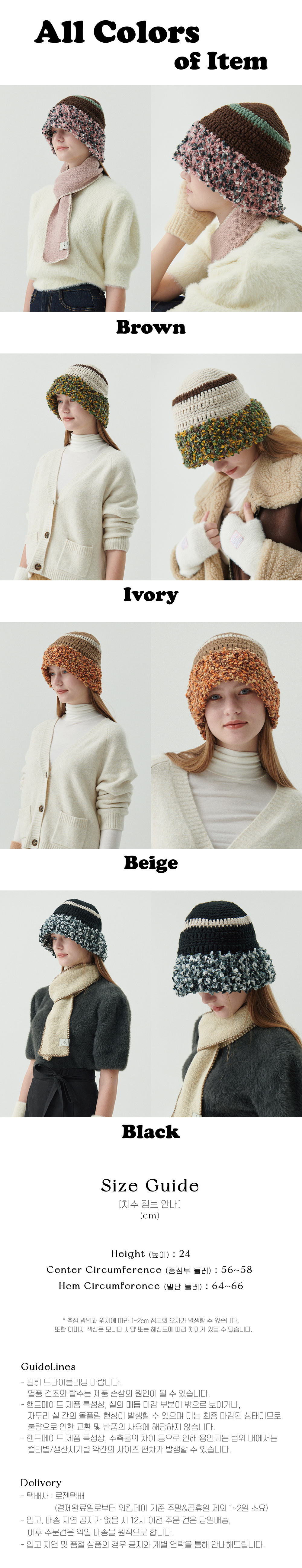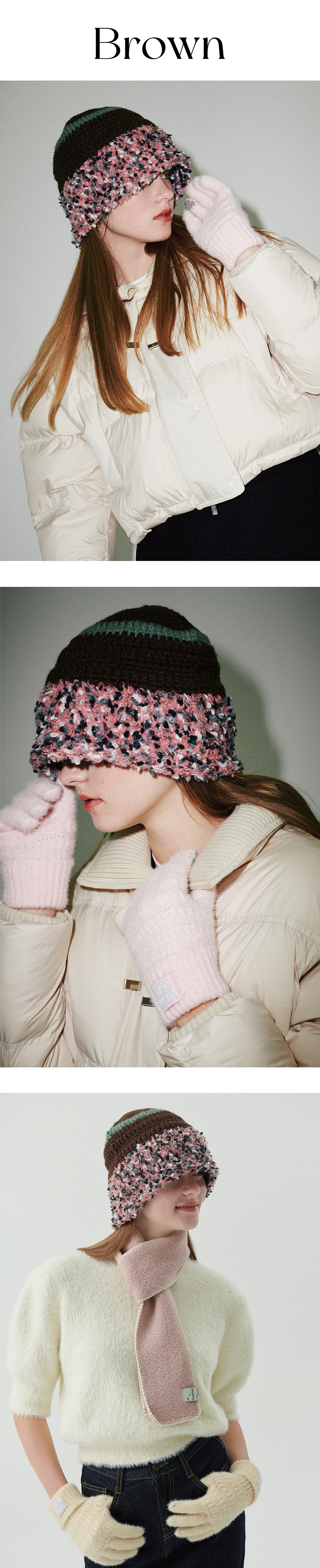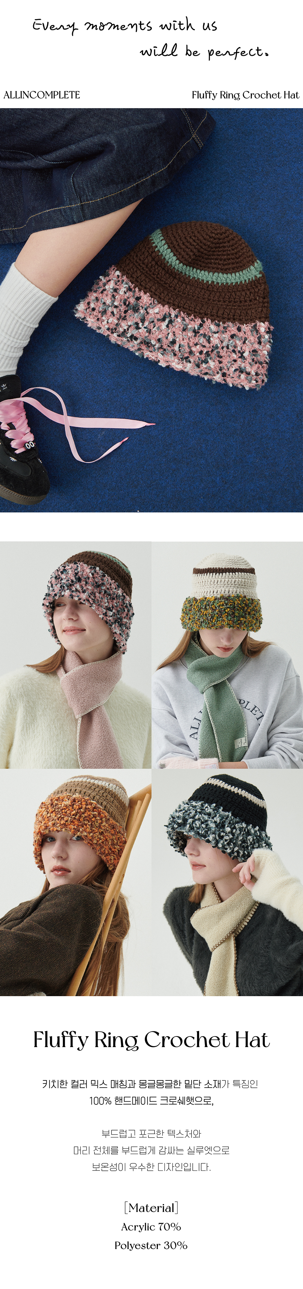올인컴플리트 플러피 링 크로셰 햇 브라운