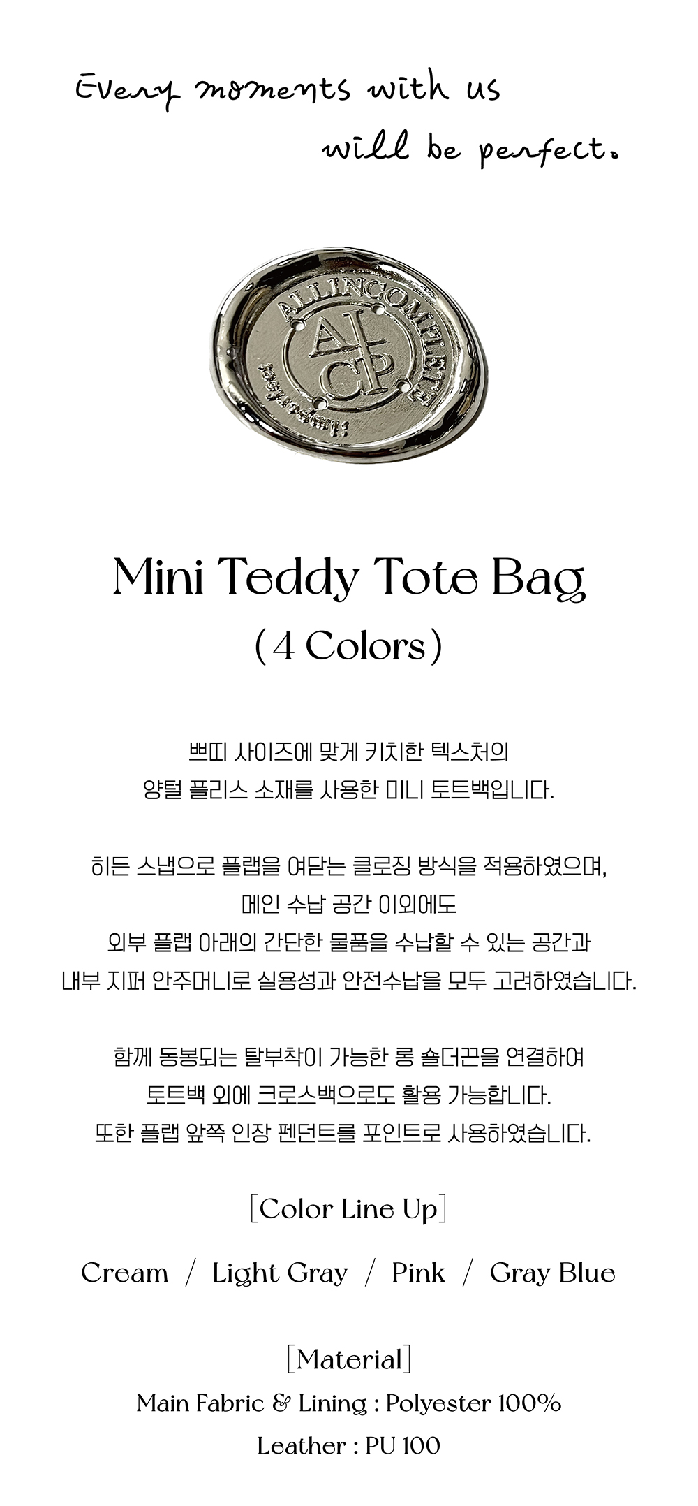 올인컴플리트 미니 테디 토트백 라이트 그레이