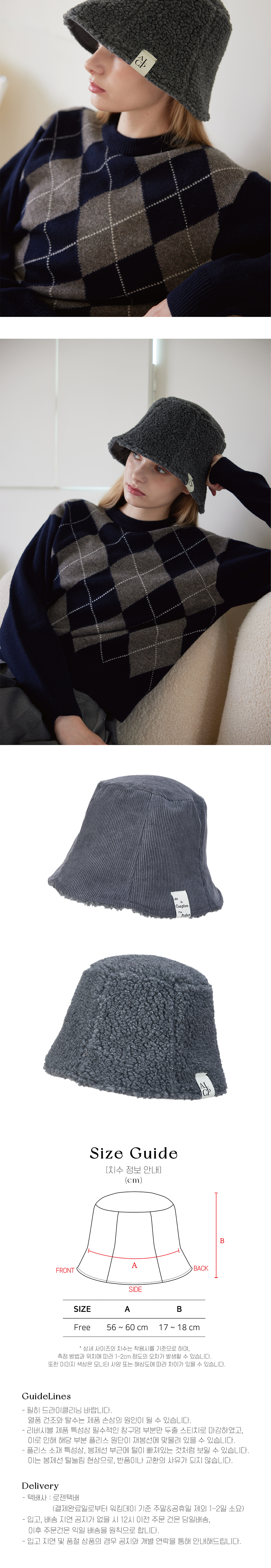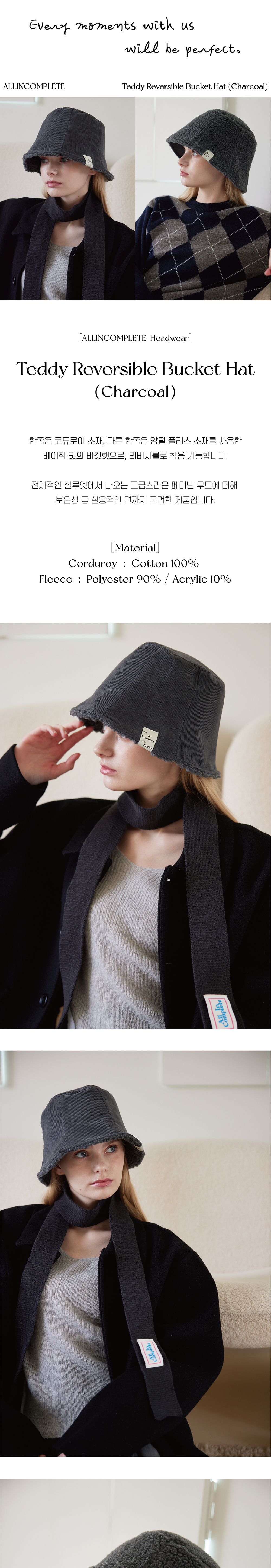 올인컴플리트 테디 리버서블 버킷햇 차콜