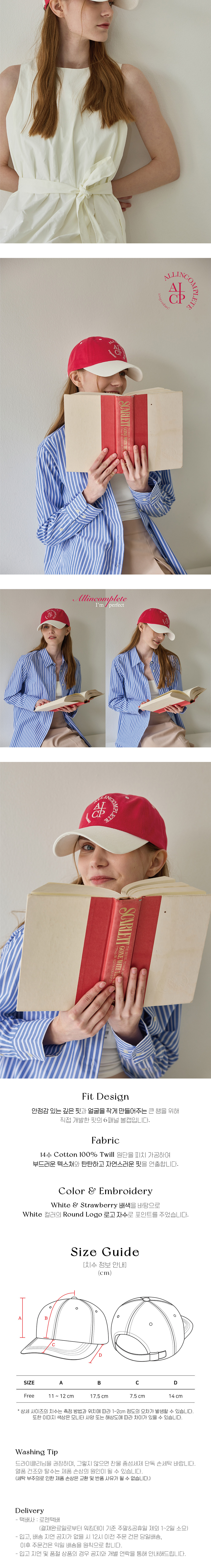올인컴플리트 라운드 로고 볼캡 화이트 & 스트로베리