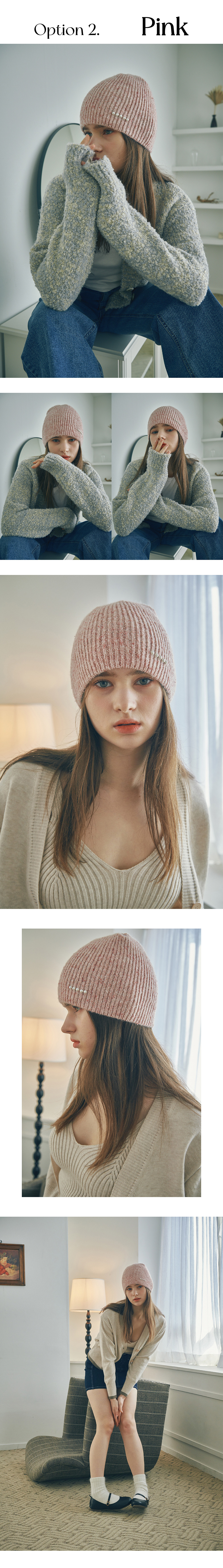 올인컴플리트 펄 컬러믹스 알파카 비니 핑크