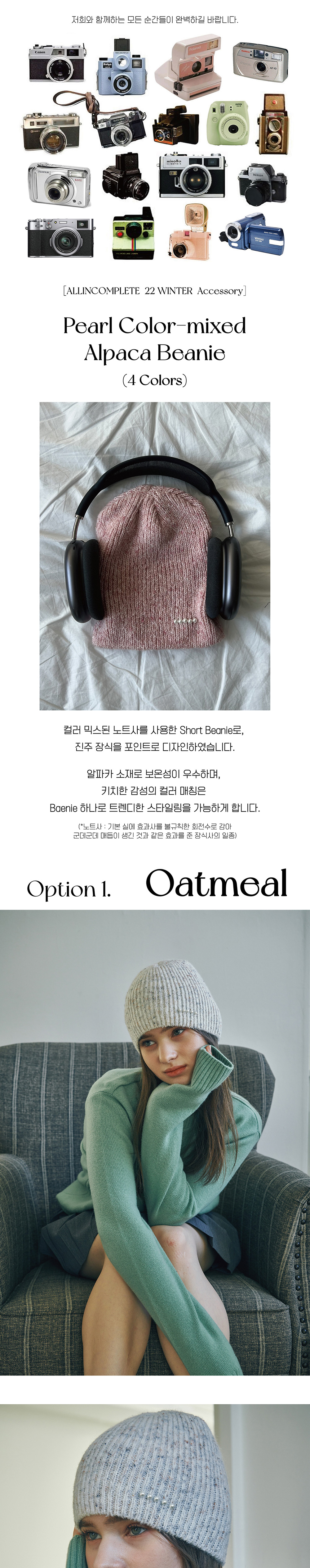 올인컴플리트 펄 컬러믹스 알파카 비니 오트밀