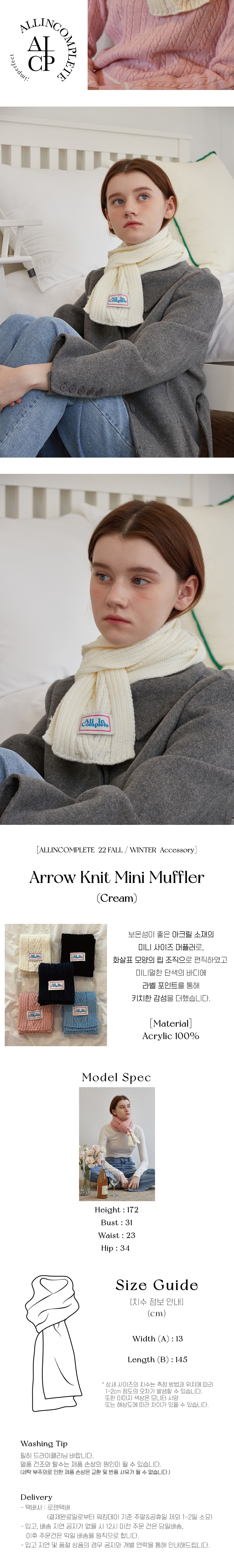 올인컴플리트 에로우 니트 미니 머플러 크림