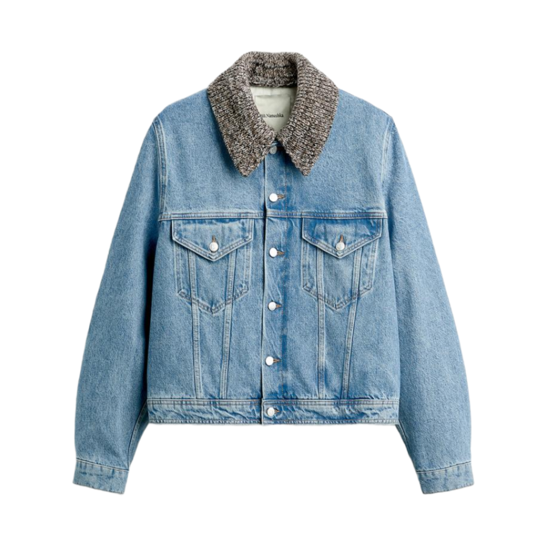 Zara x Nanushka Denim Jacket with Dot Collar Blue