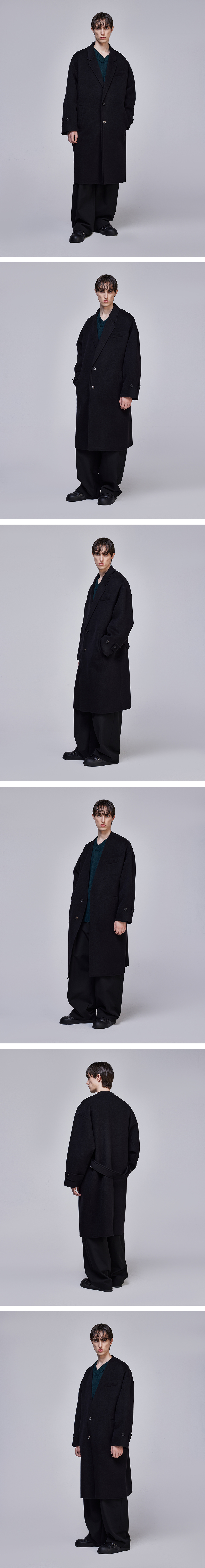 송지오 컬렉션 라펠 디터쳐블 돌먼 코트 블랙