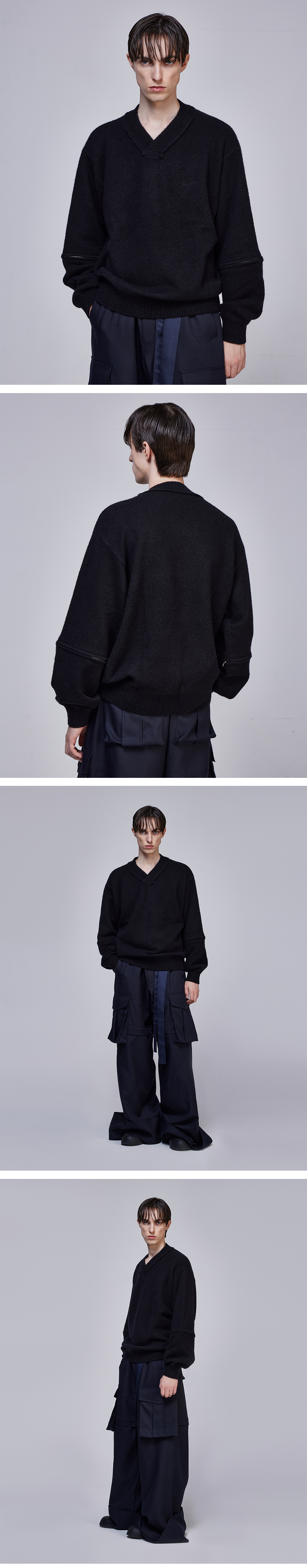 - 메타 브이넥 니트 - 보온성과 부드러운 터치의 모헤어 원사 사용 - 전면 가슴 SONGZIO AUTOGRAPH 자수 구성 - 소매 탈부착으로 두 가지 실루엣 연출 - 후면 크로스 립 디테일 - MADE IN CHINA