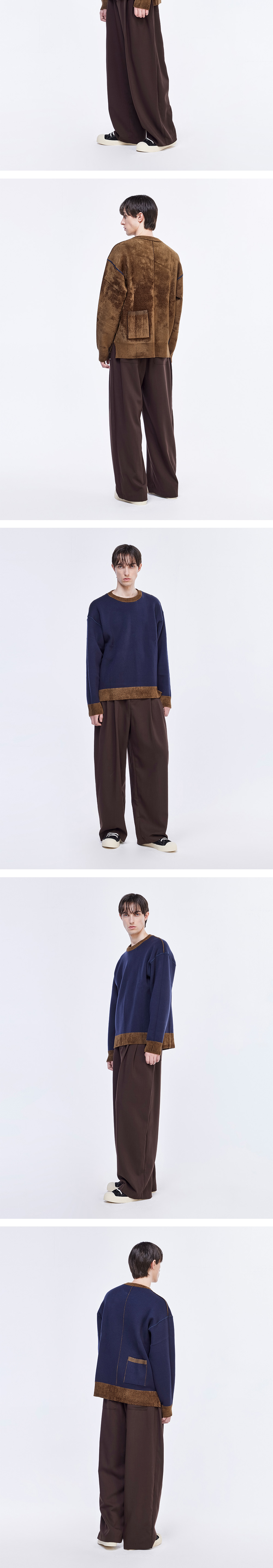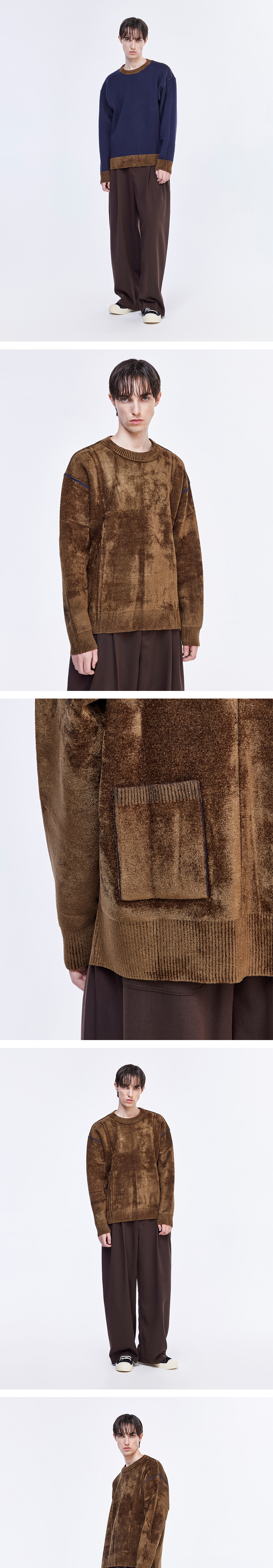 - 리버스로 다양한 연출이 가능한 크루넥 니트 - 뒤판 리버스 된 면에도 포인트 포켓 구성 - 안쪽 원사는 울 혼방으로 따듯하고 부드러운 착용감. - 이중 우수로 늘어지지 않는 탄탄한 조직감 구성 - MADE IN CHINA