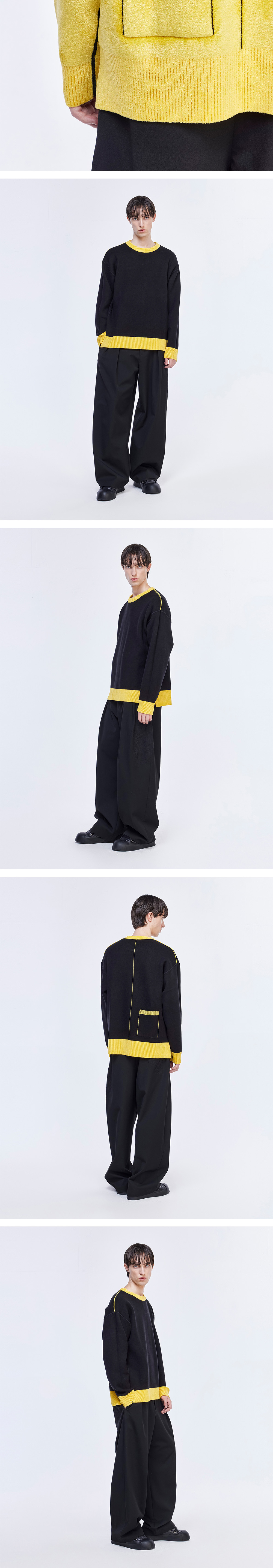 - 리버스로 다양한 연출이 가능한 크루넥 니트 - 뒤판 리버스 된 면에도 포인트 포켓 구성 - 안쪽 원사는 울 혼방으로 따듯하고 부드러운 착용감. - 이중 우수로 늘어지지 않는 탄탄한 조직감 구성 - MADE IN CHINA