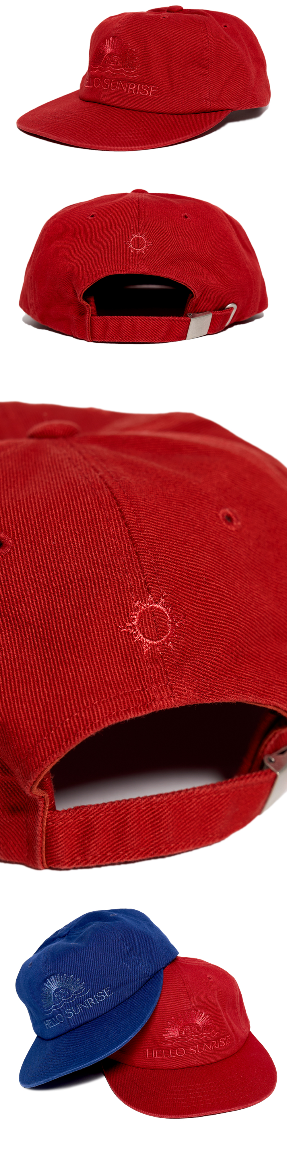 헬로선라이즈 오리지널 로고 그래픽이 자수로 들어간 6패널 캡입니다. - 워싱 가공으로 빈티지한 무드 - 뒷판 Hello Sunrise 심볼 자수 처리 *모자의 챙을 개인적인 취향에 따라 원하시는 각도로 구부려 착용하시길 권장 드립니다. *모자의 챙이 워싱과정으로 살짝 삐뚤어져보이는 현상은 제품의 불량이 아니므로 반품사유가 되지 않습니다. * Cotton 100% Made in Korea