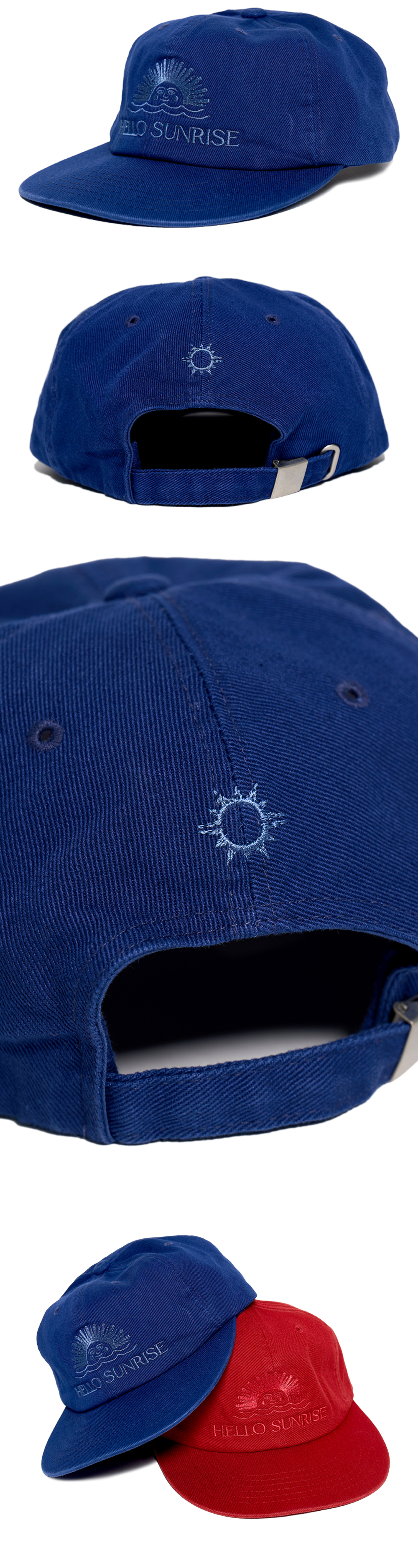 헬로선라이즈 오리지널 로고 그래픽이 자수로 들어간 6패널 캡입니다. - 워싱 가공으로 빈티지한 무드 - 뒷판 Hello Sunrise 심볼 자수 처리 *모자의 챙을 개인적인 취향에 따라 원하시는 각도로 구부려 착용하시길 권장 드립니다. *모자의 챙이 워싱과정으로 살짝 삐뚤어져보이는 현상은 제품의 불량이 아니므로 반품사유가 되지 않습니다. * Cotton 100% Made in Korea