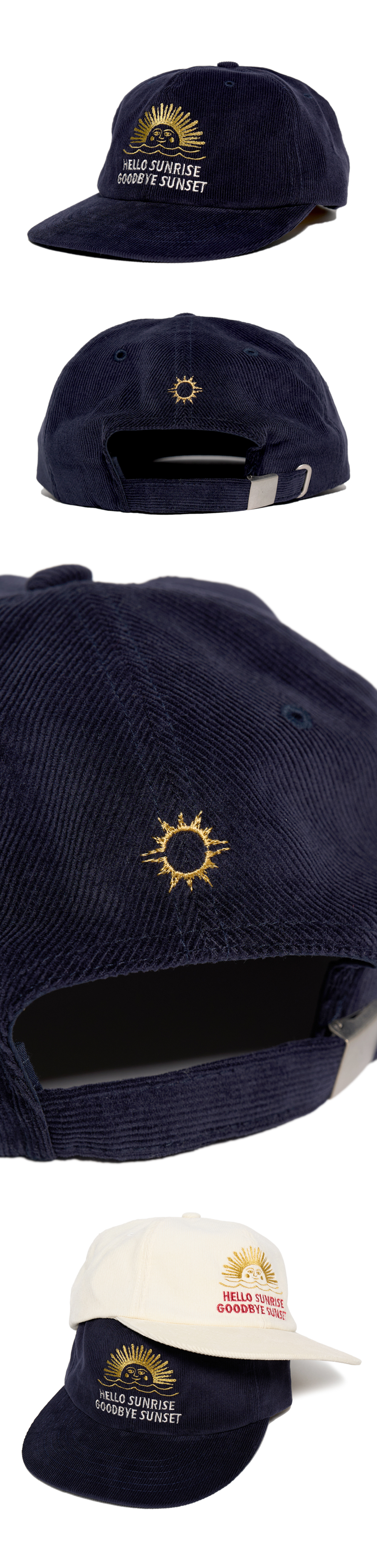헬로선라이즈 90'S 로고 그래픽이 자수로 들어간 6패널 캡입니다. - 골이 얇은 코듀로이 소재로 제작되어 4계절 착용이 가능합니다 - 뒷판 Hello Sunrise 심볼 자수 처리 *모자의 챙을 개인적인 취향에 따라 원하시는 각도로 구부려 착용하시길 권장 드립니다. *모자의 챙이 워싱과정으로 살짝 삐뚤어져보이는 현상은 제품의 불량이 아니므로 반품사유가 되지 않습니다. * Cotton 100% Made in Korea