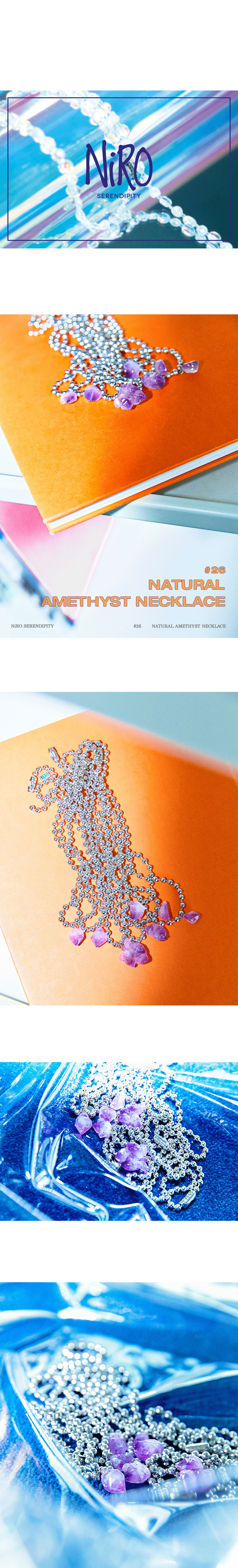 NiRO의 모든 제품은 핸드메이드로 주문후 10일 이내에 걸쳐 주문제작됩니다. 옵션 주문제작시 원하는 길이 배송메시지에 기재해주세요. 여성기준 44cm / 남성기준 50cm 의학 도구를 만들 때 사용되는 스테인리스 종류인 써지컬 스틸로 제작되었습니다. 써지컬 스틸은 위생 면에서 뛰어나 알레르기 반응을 줄일 수 있고, 변색이 되지 않아 24시간 데일리로 착용 가능합니다. 펜던트에 사용된 천연 자수정은 제품마다 모양이 각기 다른 것이 특징입니다.