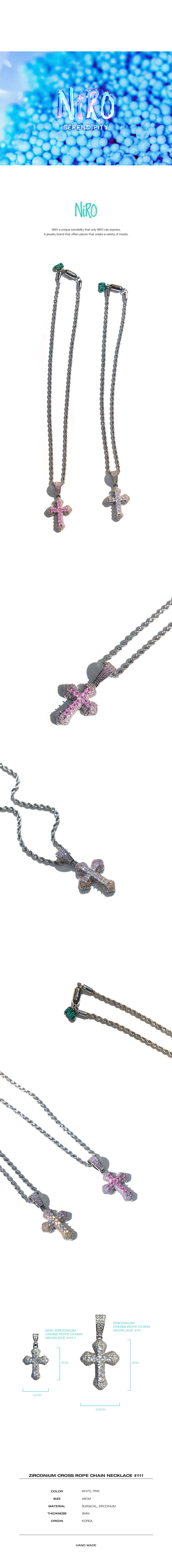 니로 세렌디피티 지르코늄 크로스 로프 체인 네크리스