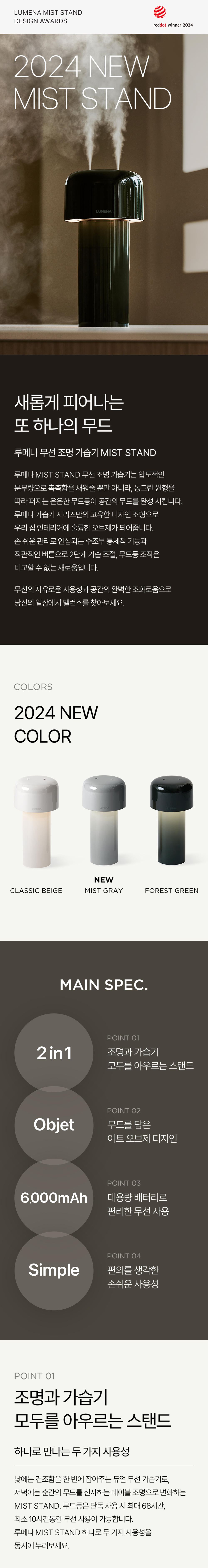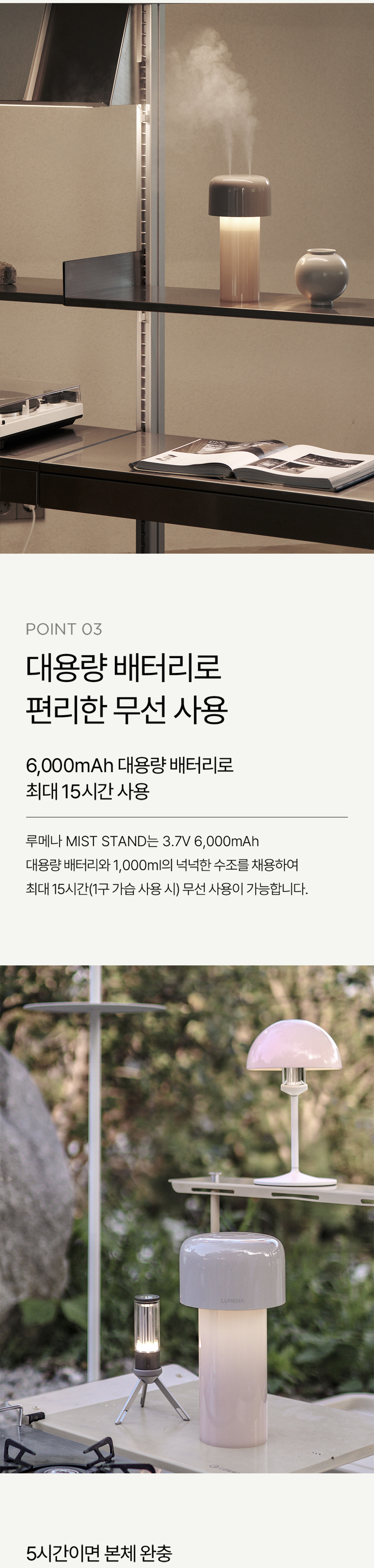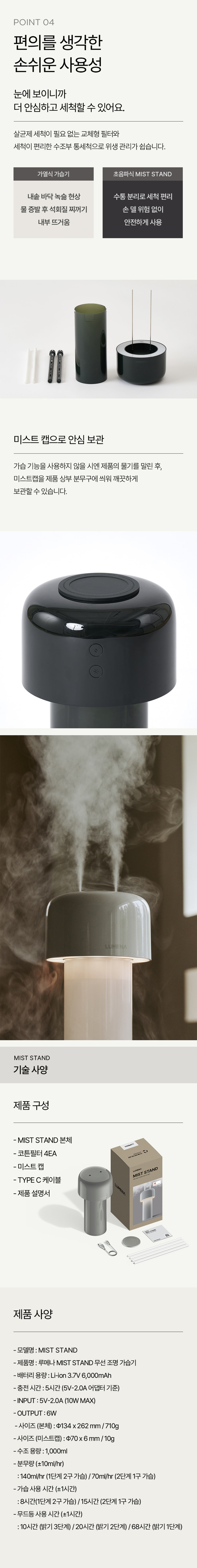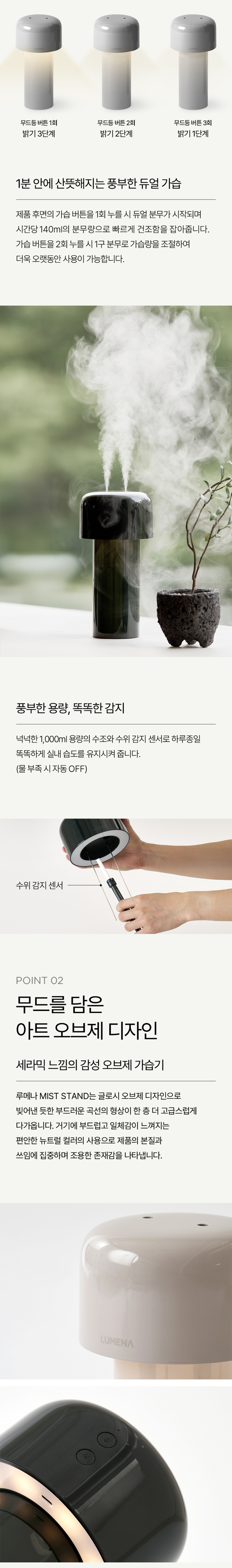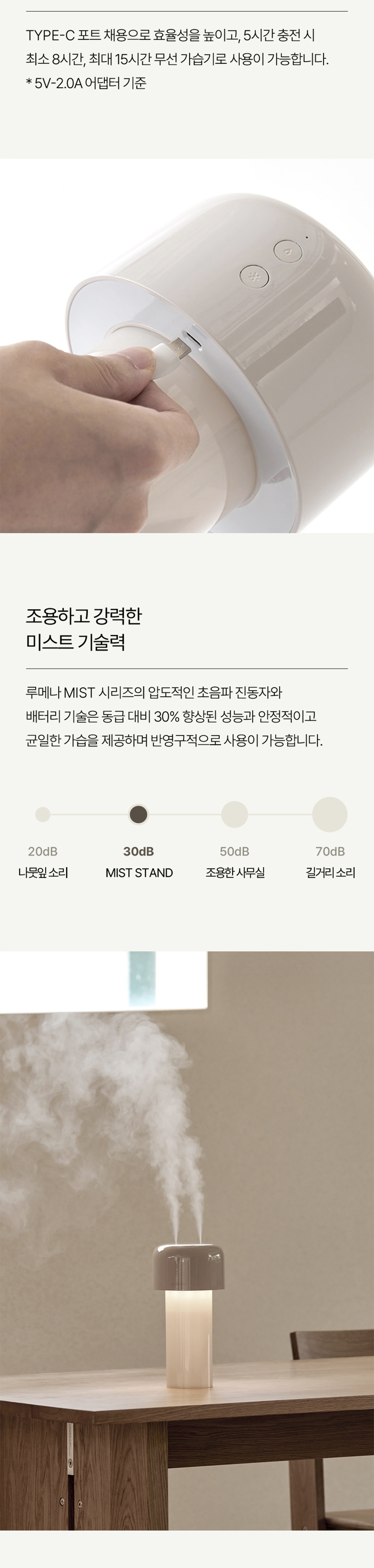 루메나 미스트 스탠드 무선 조명 가습기 미스트 그레이