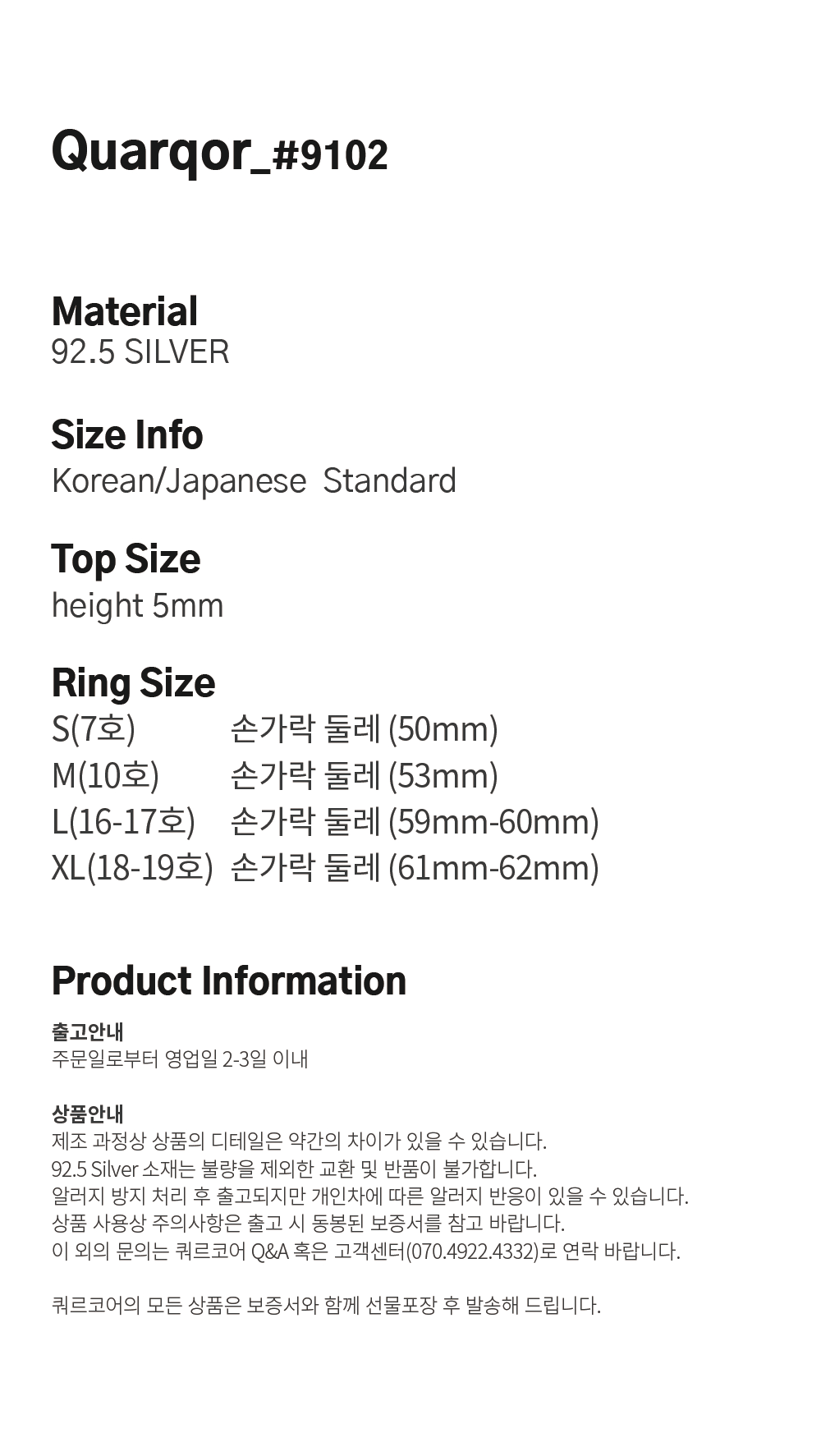 쿼르코어 #9102 실버92.5 링