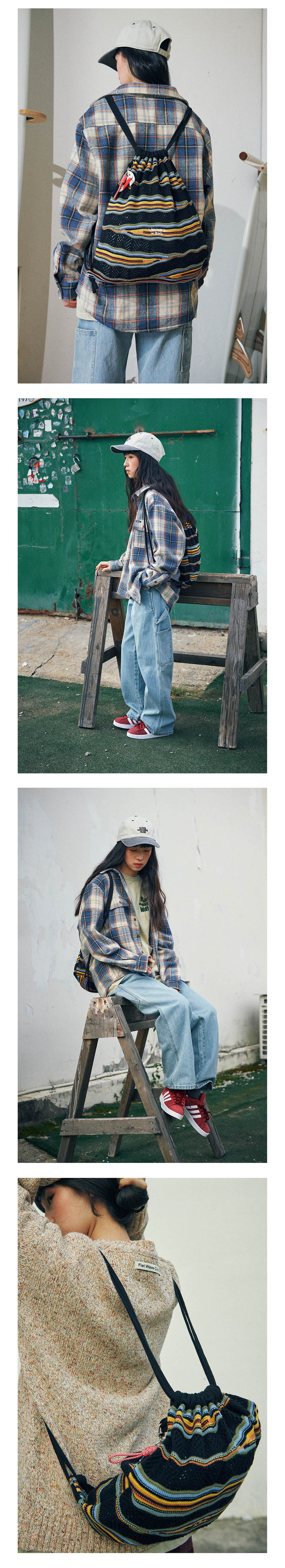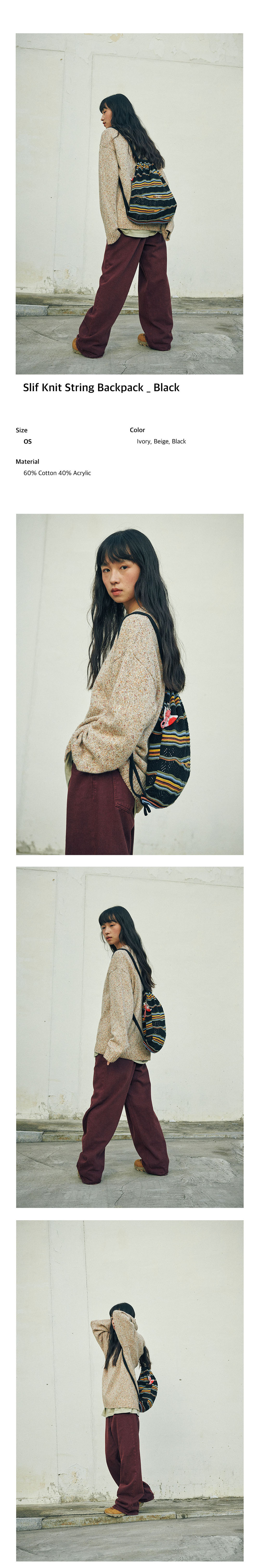 Flatwave in Seoul Slif Knit String Backpack Black