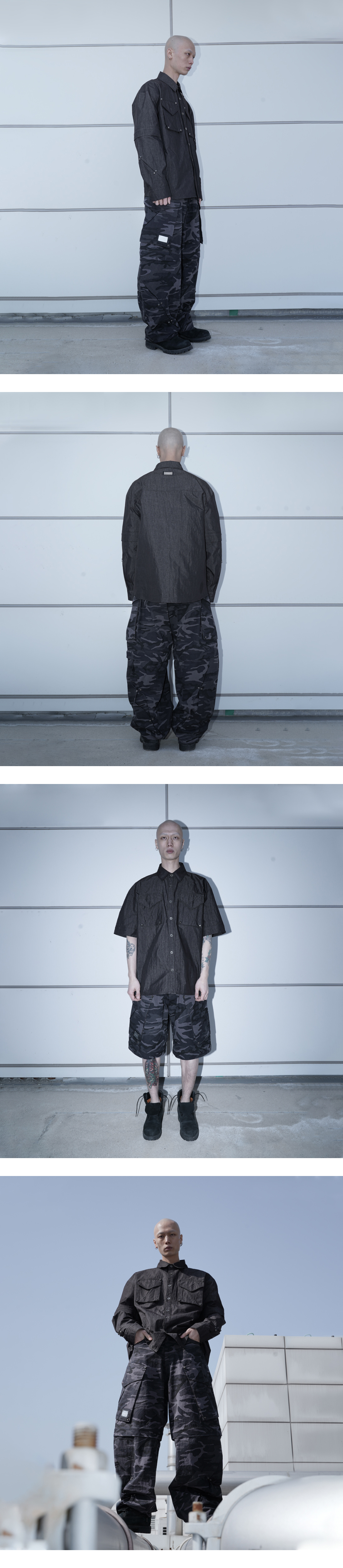 MODEL 184cm / 66kg 3 SIZE 착용 일상을 살아가며 우리들은 상처를 입고 상처를 주며 살아갑니다. 새겨지는 크고 작은 상처들이 흔적처럼 남고, 아물어지지 않은 채 벌려지고 오므려 지는 형태를 곳곳에 맞주름들로 표현 하였습니다. 지퍼로 탈착해 버뮤다 팬츠로도 활용이 가능합니다. 허리 비조로 한사이즈 (2인치) 조절이 가능합니다. - YKK ZIPPER - 32개의 리벳 디테일 - 벌룬 실루엣 - 허리 비조 - 버뮤다 팬츠로 변형 가능 - ERR 시그니처 메탈 디테일