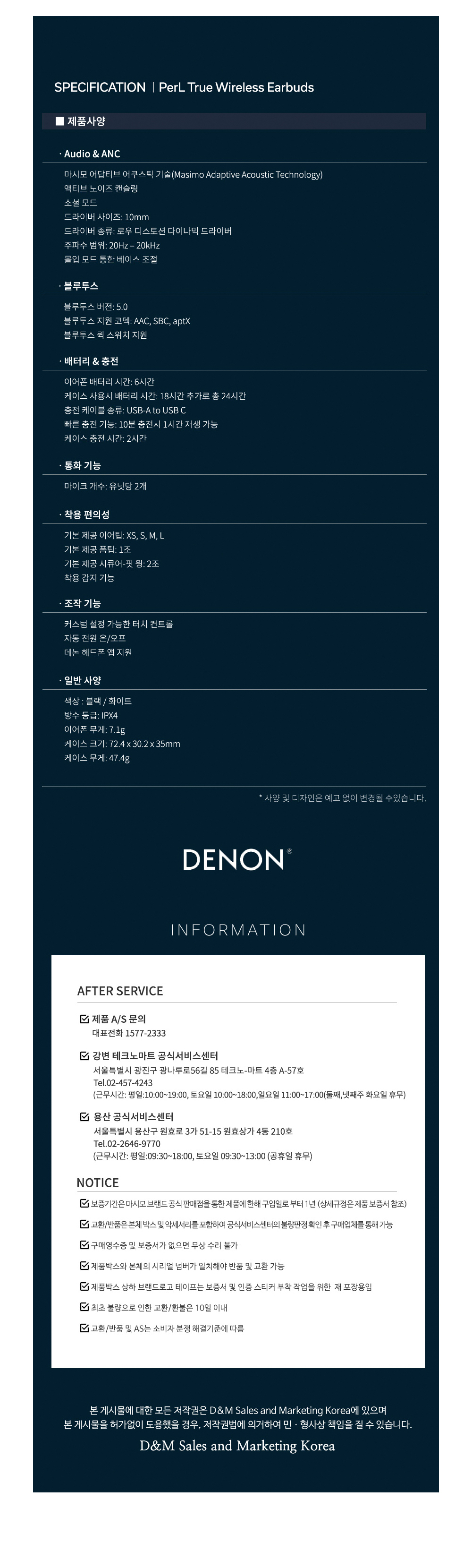 데논 펄 AH-C10PL 노이즈 캔슬링 무선 이어폰 화이트 (국내 정식 발매 제품)