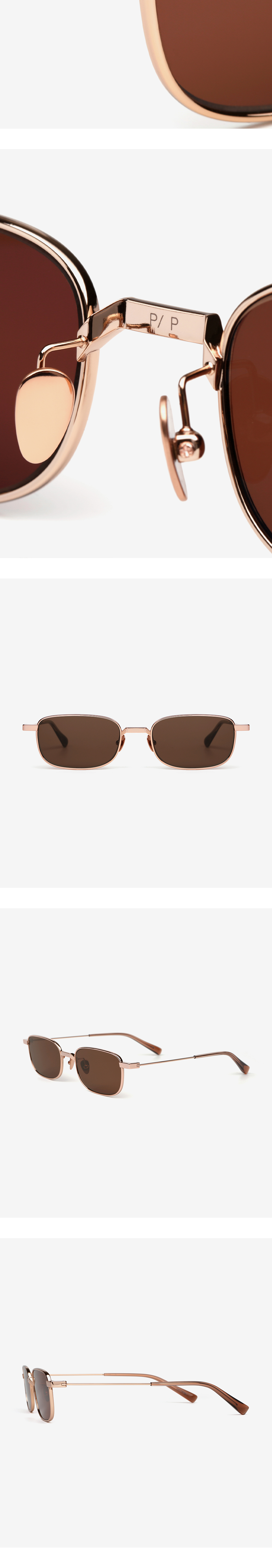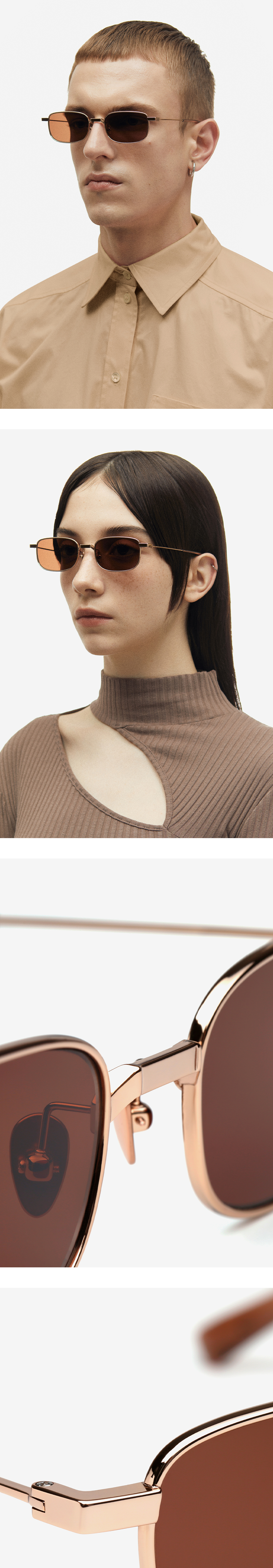 안정적인 비례와 균형에 초점을 맞춘 사각형 메탈 선글라스. 클래식한 안구 형태에 세로로 플랫한 템플과 엣지가 살아있는 브릿지가 더해져 은은한 독특함을 선사합니다.