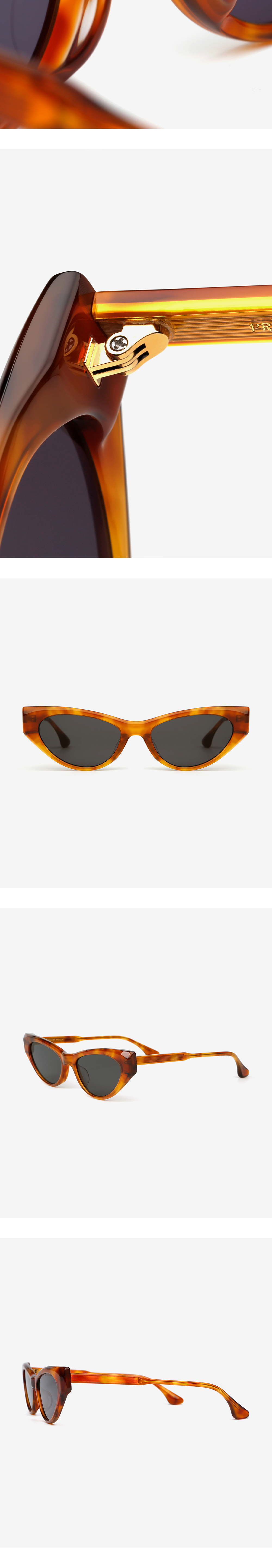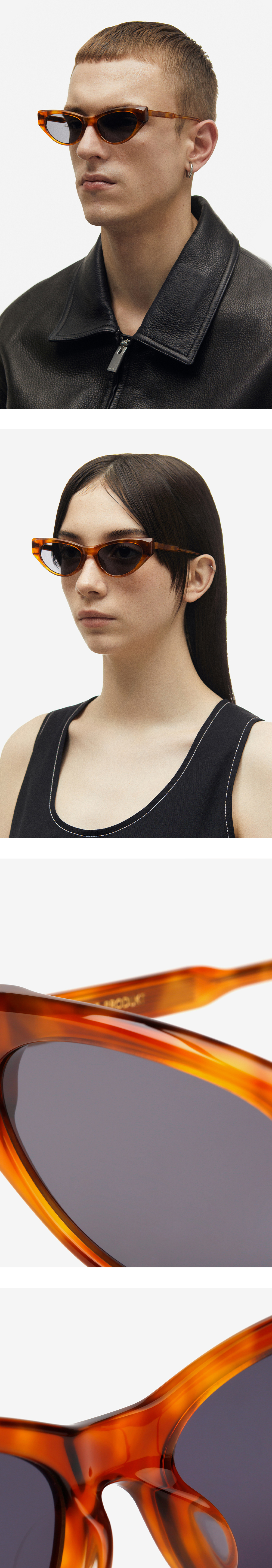 대담한 실루엣과 부드러운 라인으로 깎여나간 엣지가 돋보이는 캣아이 아세테이트 선글라스. 슬림한 형태의 템플이 프레임의 실루엣을 강조해 마치 캣아이 마스크와 같은 강렬함을 선사합니다.