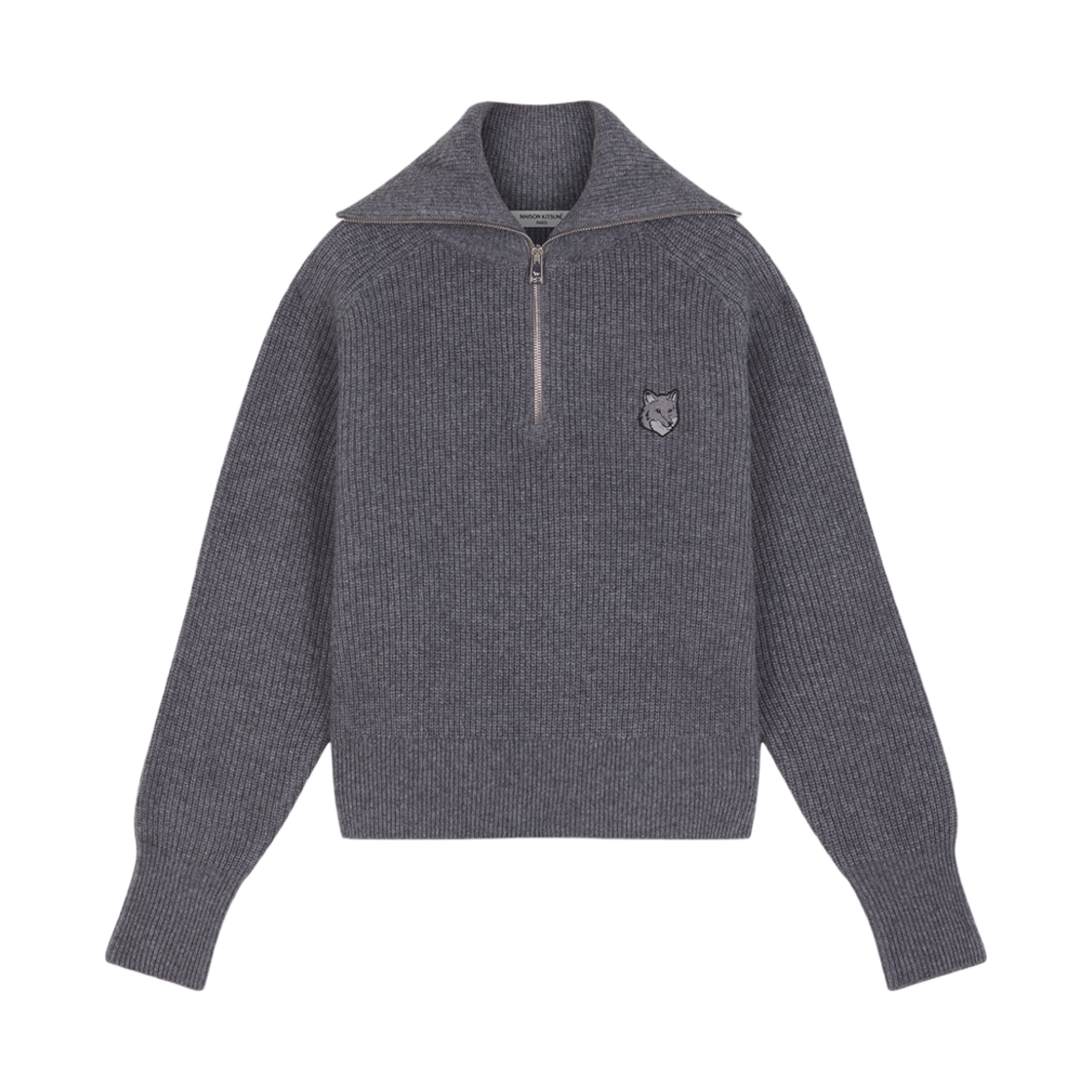 메종 키츠네 볼드 폭스 헤드 패치 하프 집 립드 점퍼 미디움 그레이 멜란지