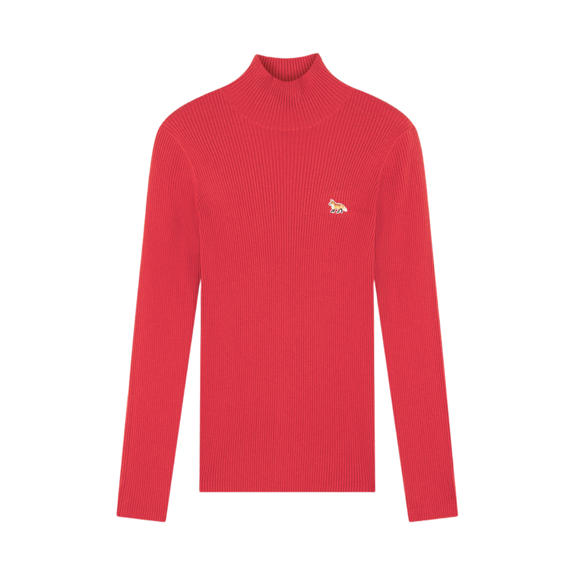 (W) Maison Kitsune Baby Fox Patch Fine Ribbed Turtleneck Autumn Red