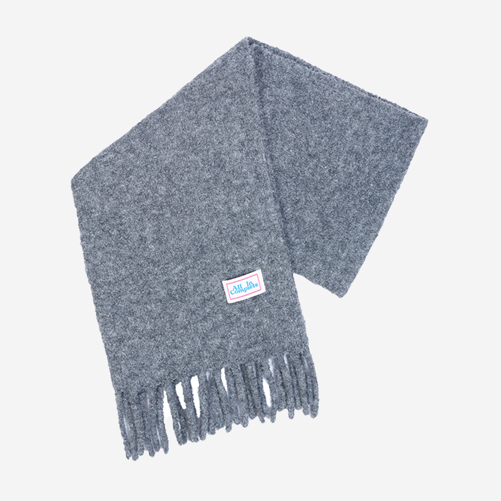 올인컴플리트 부클 태슬 니트 머플러 차콜