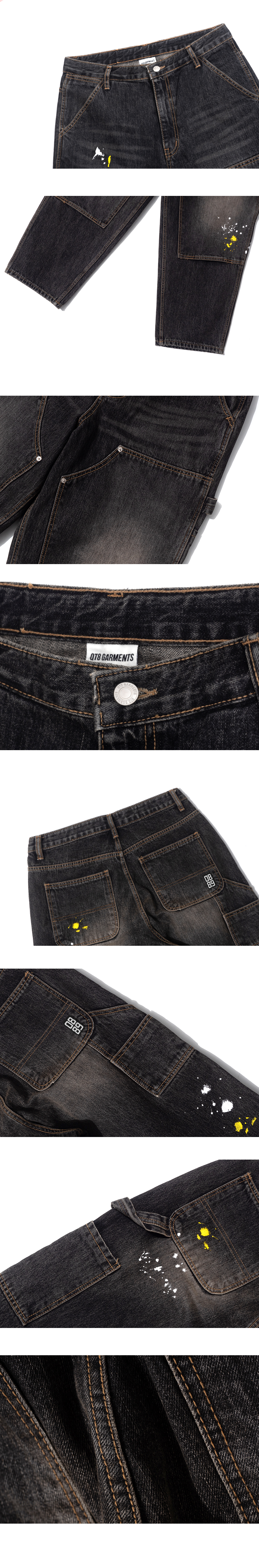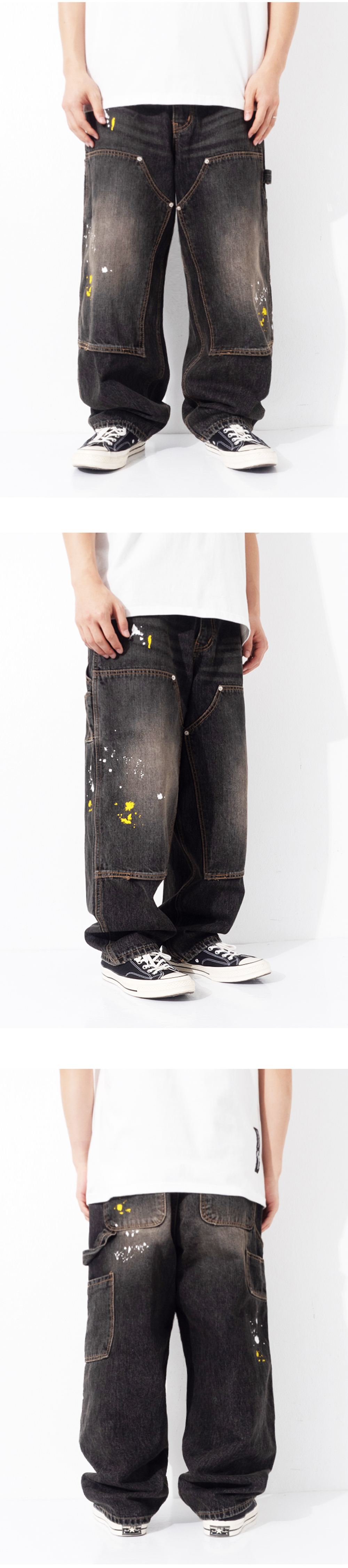 큐티에잇 가먼츠 페인티드 더블니 워시드 팬츠 블랙
