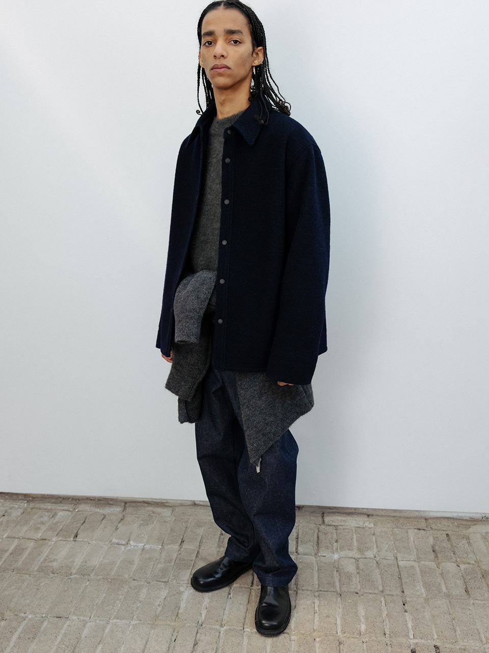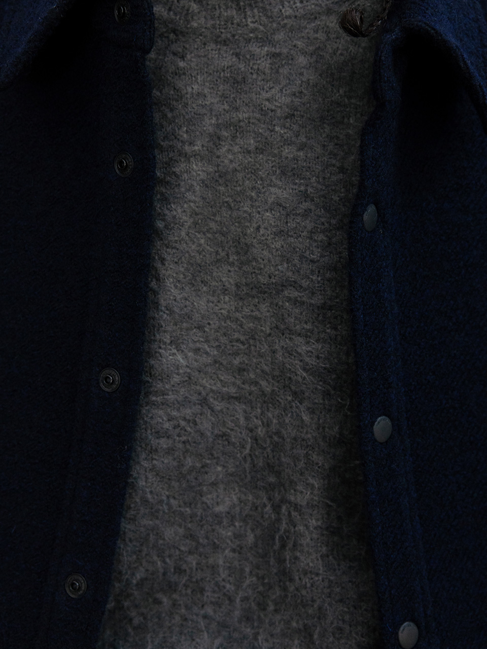 특유의 요철감이 돋보이는 울 블랜드 부클 원단으로 제작한 자켓입니다. 베이직한 셔츠형 자켓 디자인으로, 간결한 실루엣에 옆 봉제선에 주머니를 넣어 웨어러블한 아이템입니다. 고급스러운 트윌 조직의 안감으로 라이닝 처리하였으며 로고 각인된 선그립 스냅으로 마무리하였습니다. 46어깨 52CM 가슴 60.5CM 총장 75CM 밑단 60.5CM 소매 65CM 48어깨 54CM 가슴 63CM 총장 76CM 밑단 63CM 소매 66CM 50어깨 56CM 가슴 65.5CM 총장 77CM 밑단 65.5CM 소매 67CM 치수는 재는 위치에 따라 1-3cm 차이 생길 수 있습니다. 어두운 원단은 염색되었기 때문에 밝은 아이템과 착용 시 주의 부탁드립니다. DRY CLEAN ONLY 182 마른 체형 모델 (48 사이즈 착용)