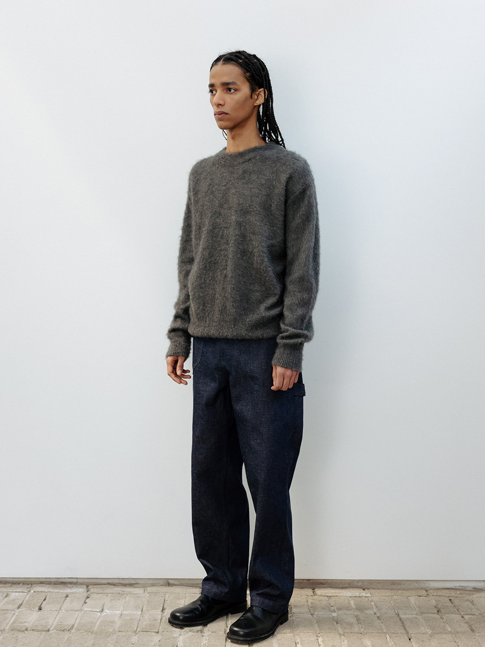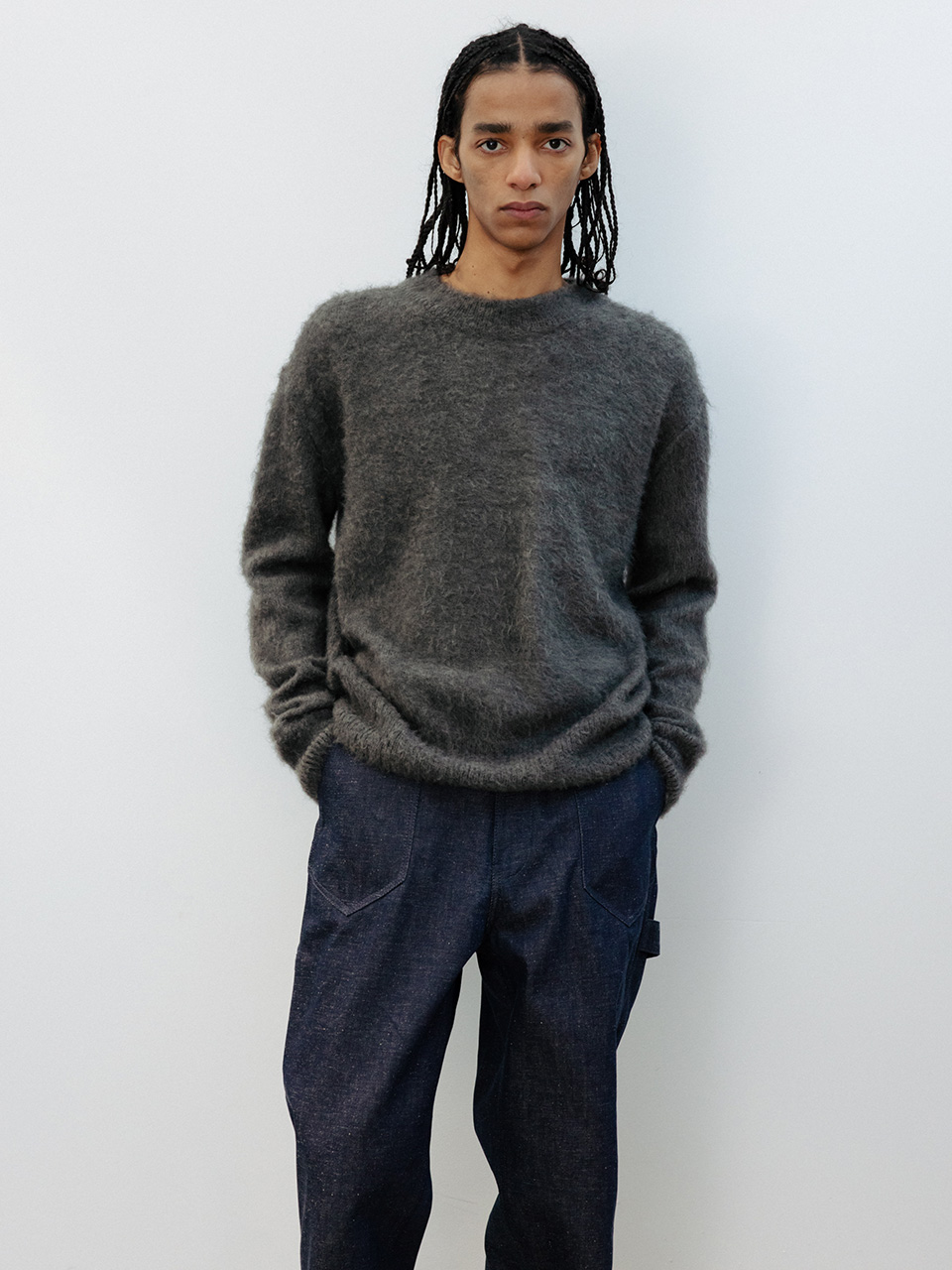 최고급 모헤어 이태리 원사로 제작된 스웨터 입니다. 특수 브러쉬기법을 사용하여 풍성한 헤어감을 만든 니트 풀오버 제품으로 에센셜한 디자인을 갖고 있어 활용도가 높으며 보온성이 좋은 상품입니다. 46어깨 52CM 가슴 58CM 총장 64CM 밑단 38CM 소매 62CM 48어깨 55CM 가슴 61CM 총장 66CM 밑단 41CM 소매 62CM 50어깨 58CM 가슴 64CM 총장 68CM 밑단 44CM 소매 63CM 치수는 재는 위치에 따라 1-3cm 차이 생길 수 있습니다. 어두운 원단은 염색되었기 때문에 밝은 아이템과 착용 시 주의 부탁드립니다. DRY CLEAN ONLY 182 마른 체형 모델 (48 사이즈 착용)