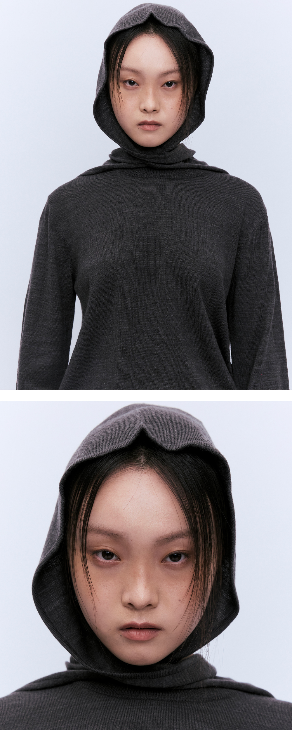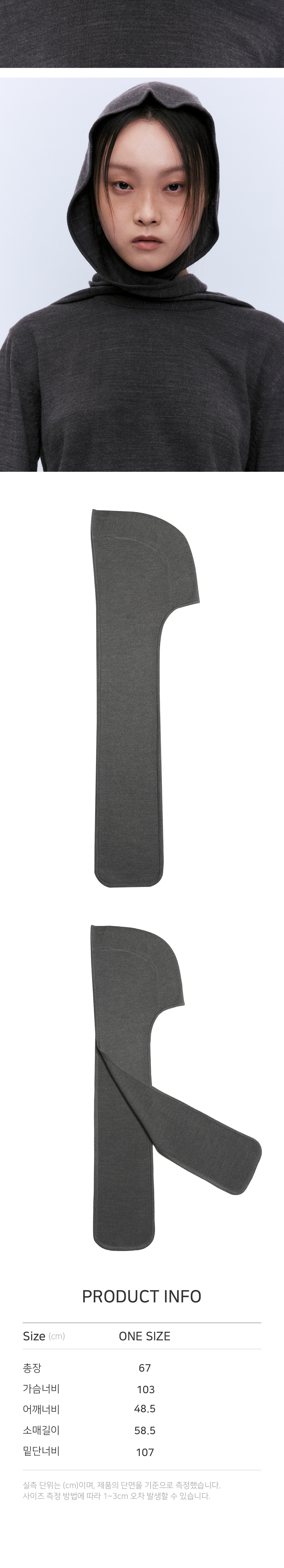 유지 울 베이직 니트 머플러 햇 그레이