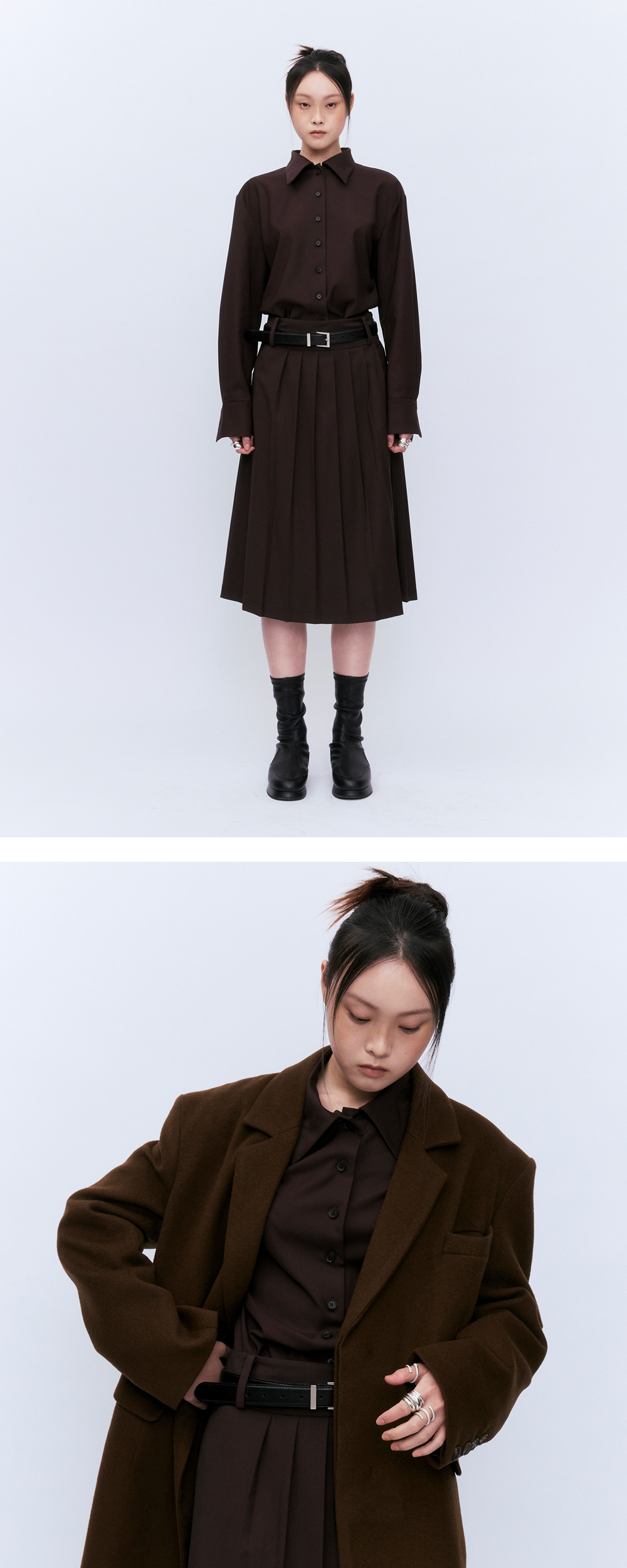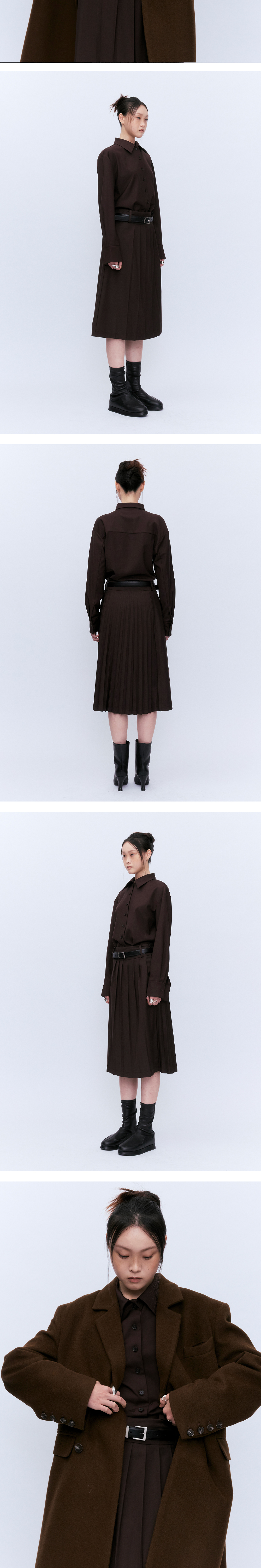 텐셀이 혼방되어 피부에 닿았을때 부드러운 텍스처로 너무 얇지도 두껍지도 않은 소재로 사계절 착용 가능한 셔츠입니다. 허리라인을 잡아주는 디테일로 페미닌한 무드가 돋보입니다. 미들셋업 스커트와 같이 입으시면 더 모던하면서도 유니크한 느낌으로 연출가능합니다.
