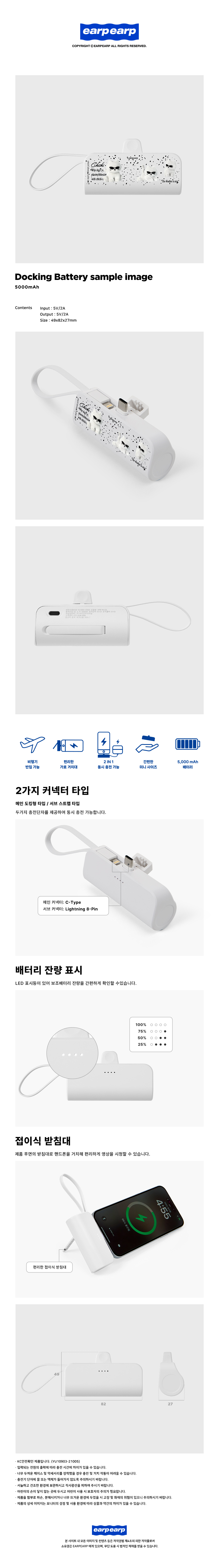 earpearp Sunglasses Chichi Docking Type Auxiliary Battery White