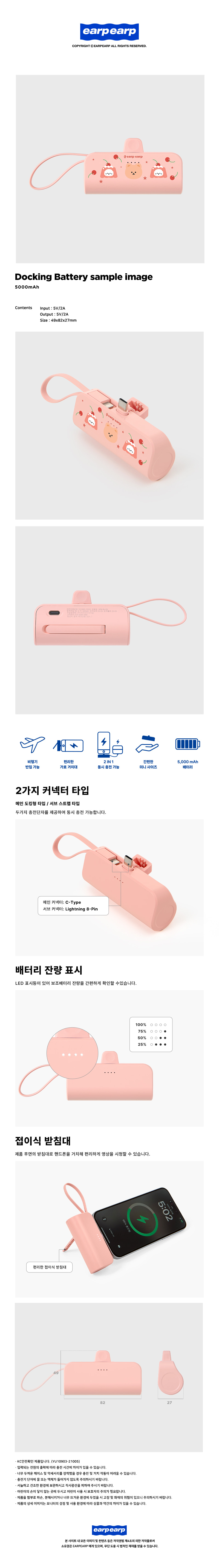 earpearp Pudding Chichi Covy Docking Type Auxiliary Battery Pink