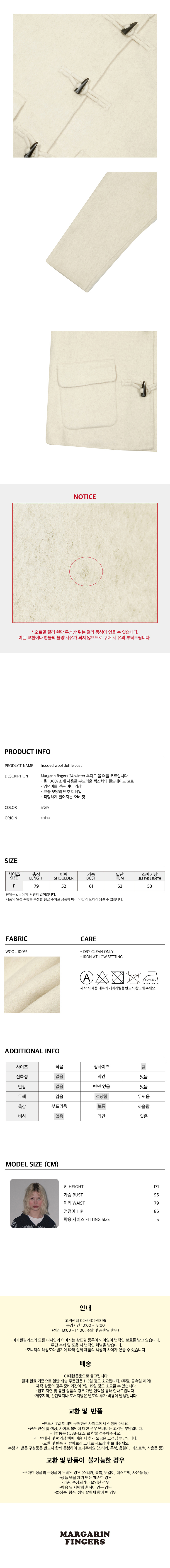 마가린핑거스 후디 울 더플 코트 아이보리