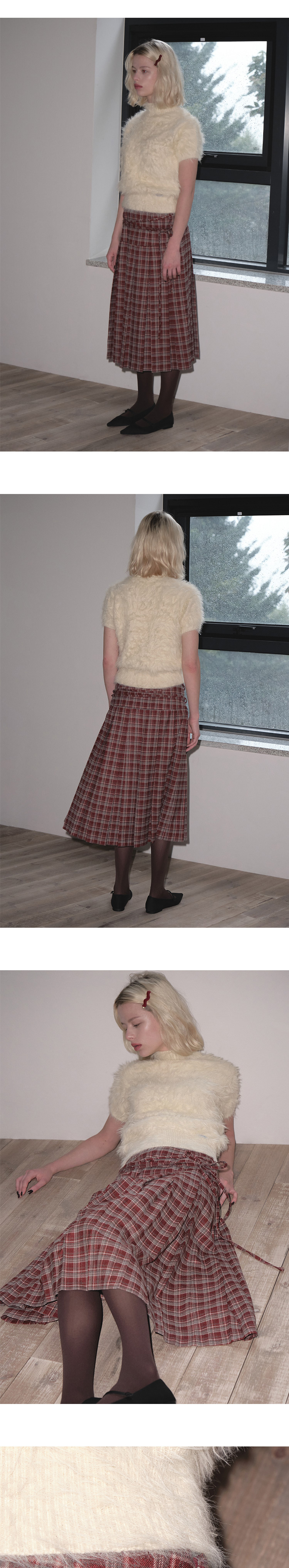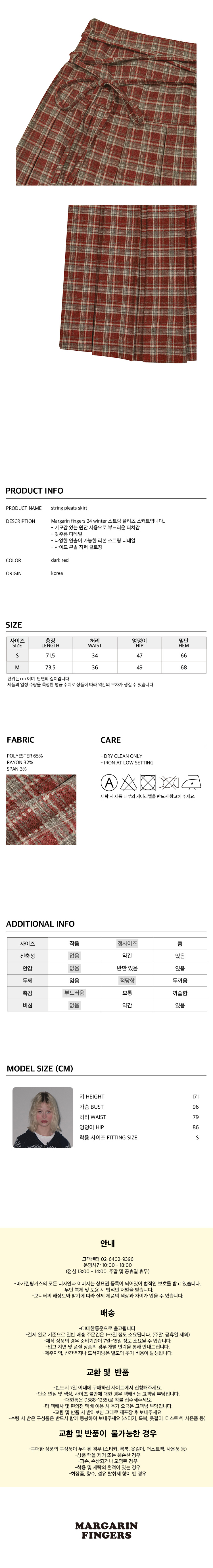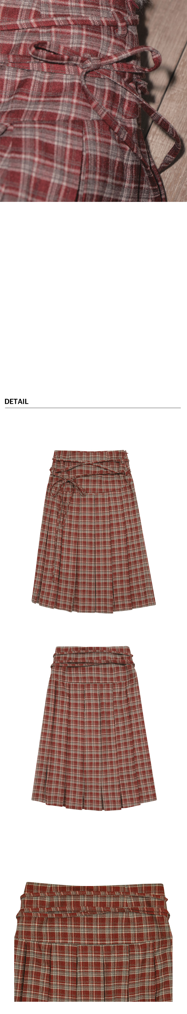 마가린핑거스 스트링 플리츠 스커트 다크 레드