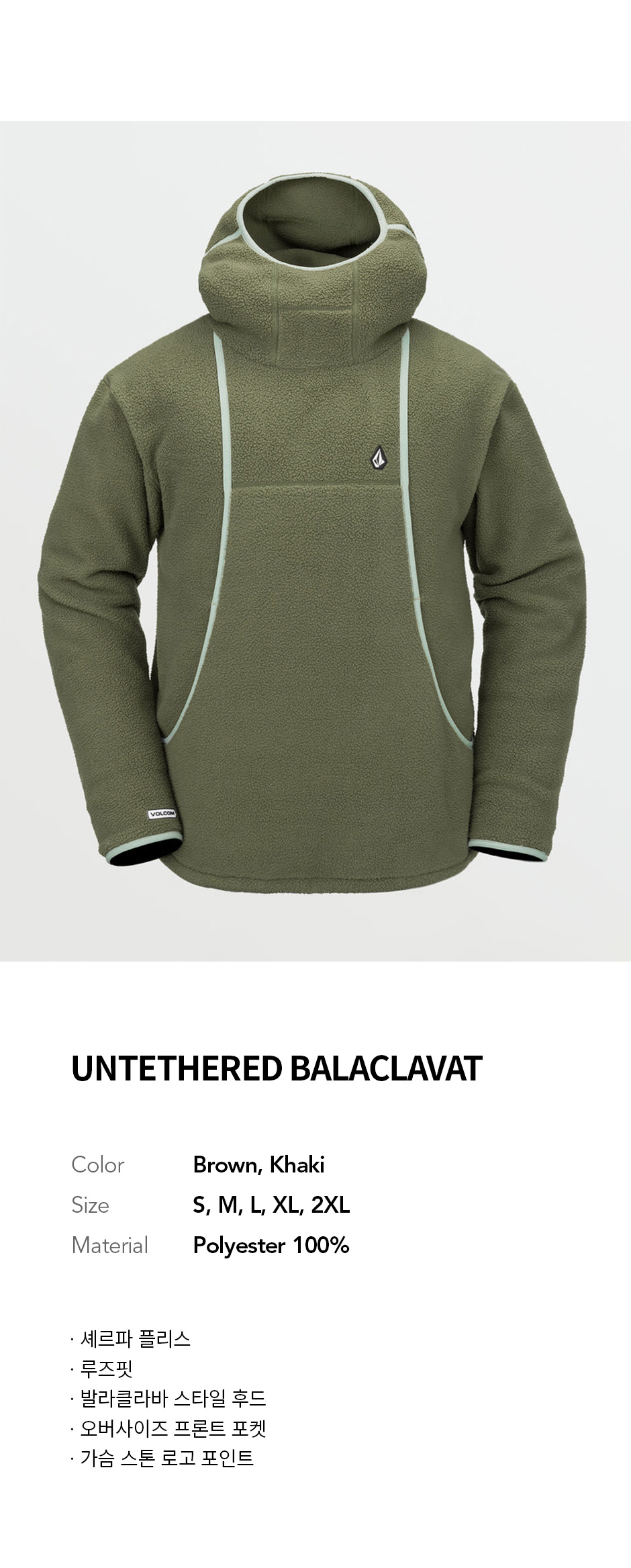 볼컴 언테더링 발라클라바 후드 카키