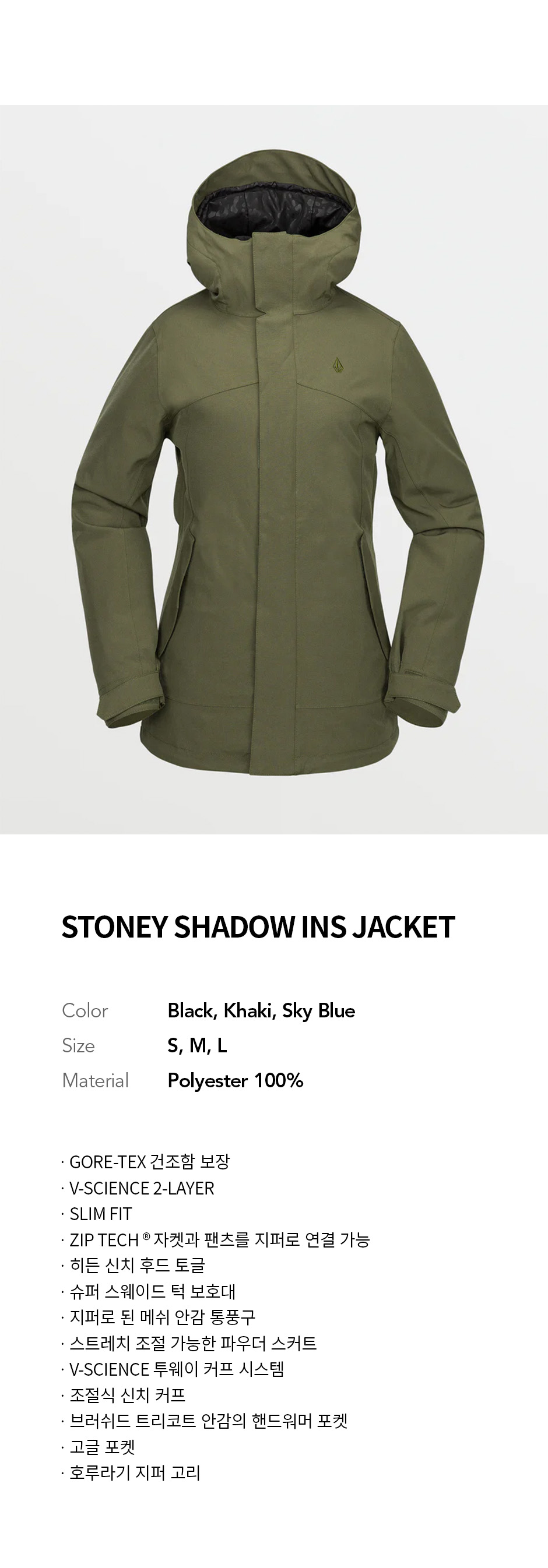 볼컴 우먼즈 스토니 섀도우 인슐레이티드 자켓 카키