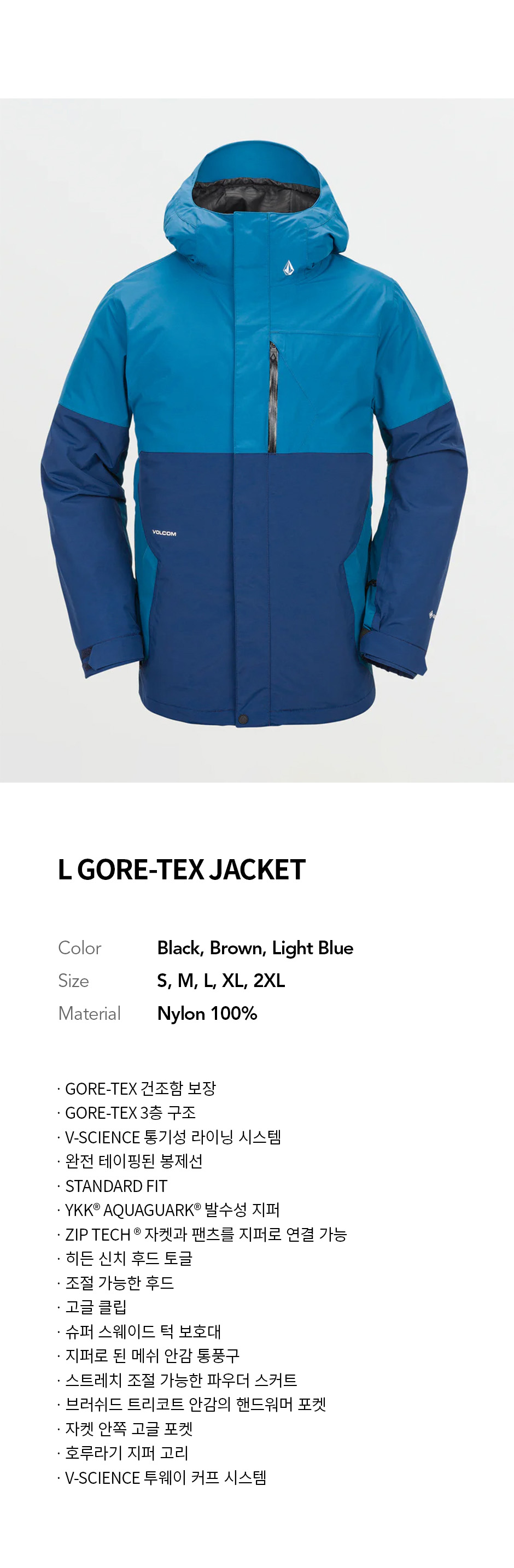 볼컴 맨즈 L 고어텍스 자켓 라이트 블루