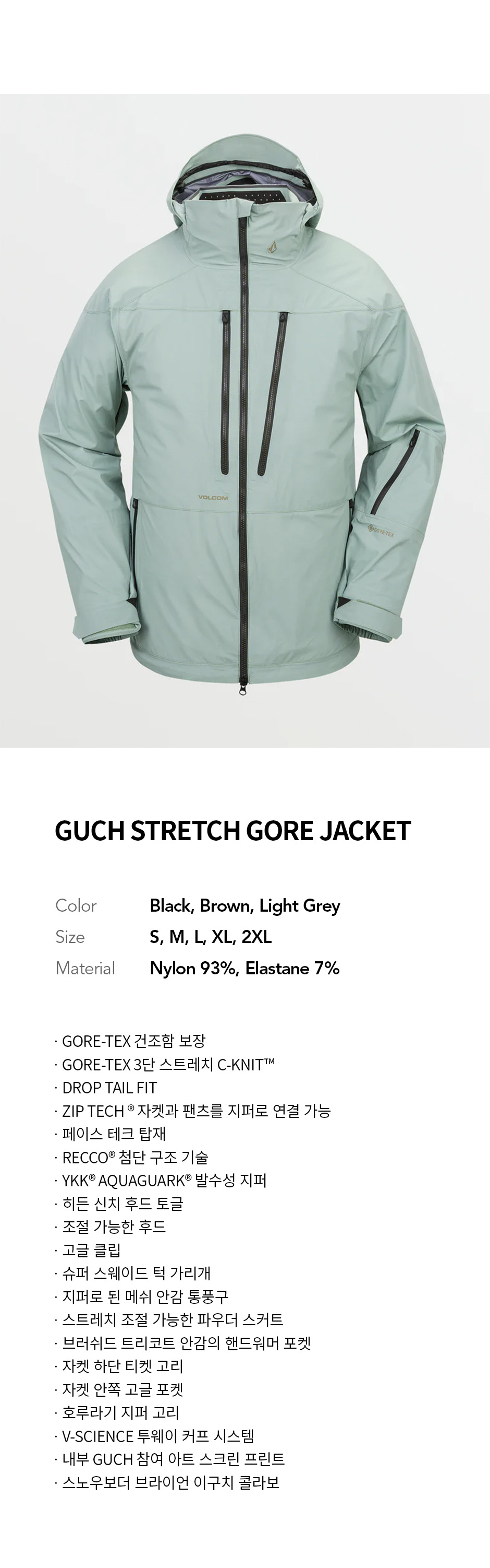 볼컴 맨즈 구치 스트레치 고어 자켓 라이트 그레이