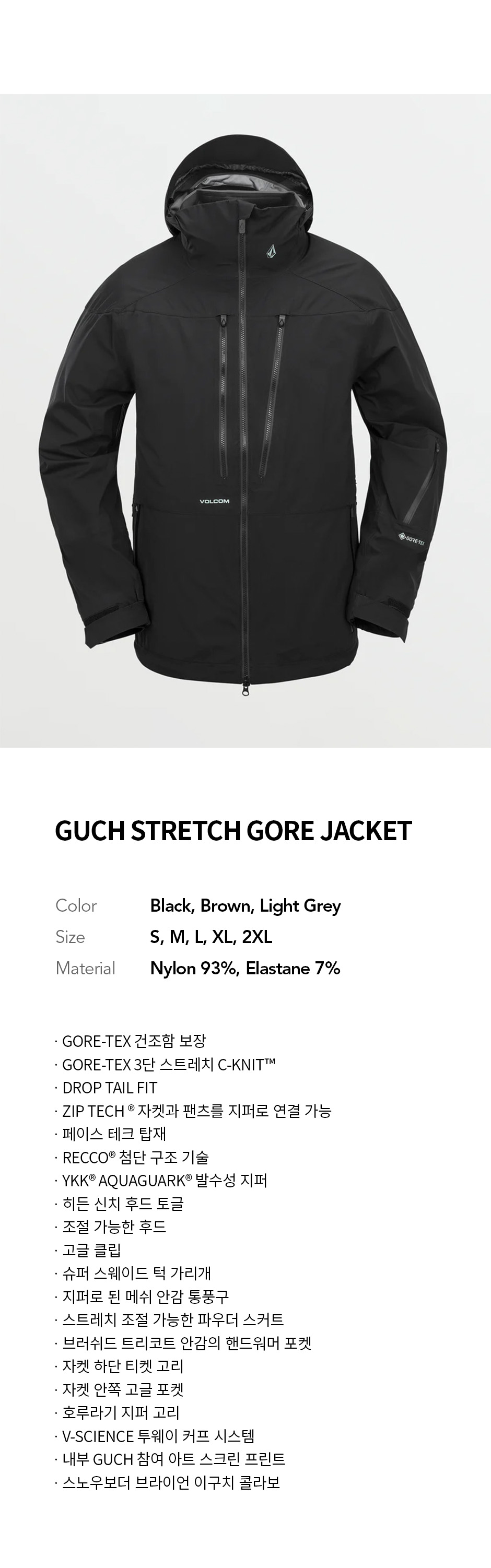 볼컴 맨즈 구치 스트레치 고어 자켓 블랙