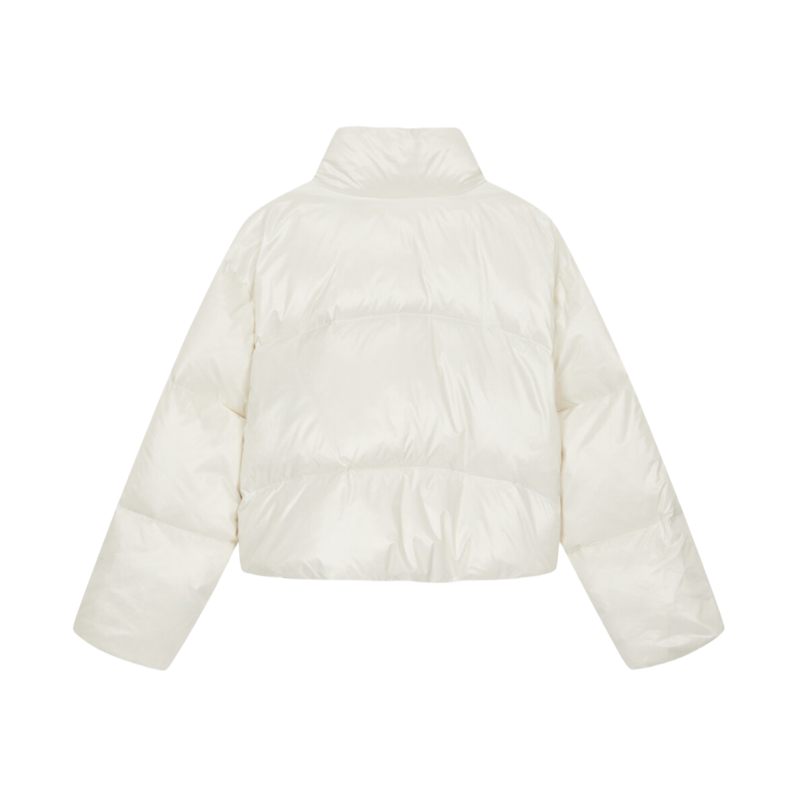 (W) 캘빈 클라인 크롭 글로시 커브드 퀼팅 다운 푸퍼 화이트