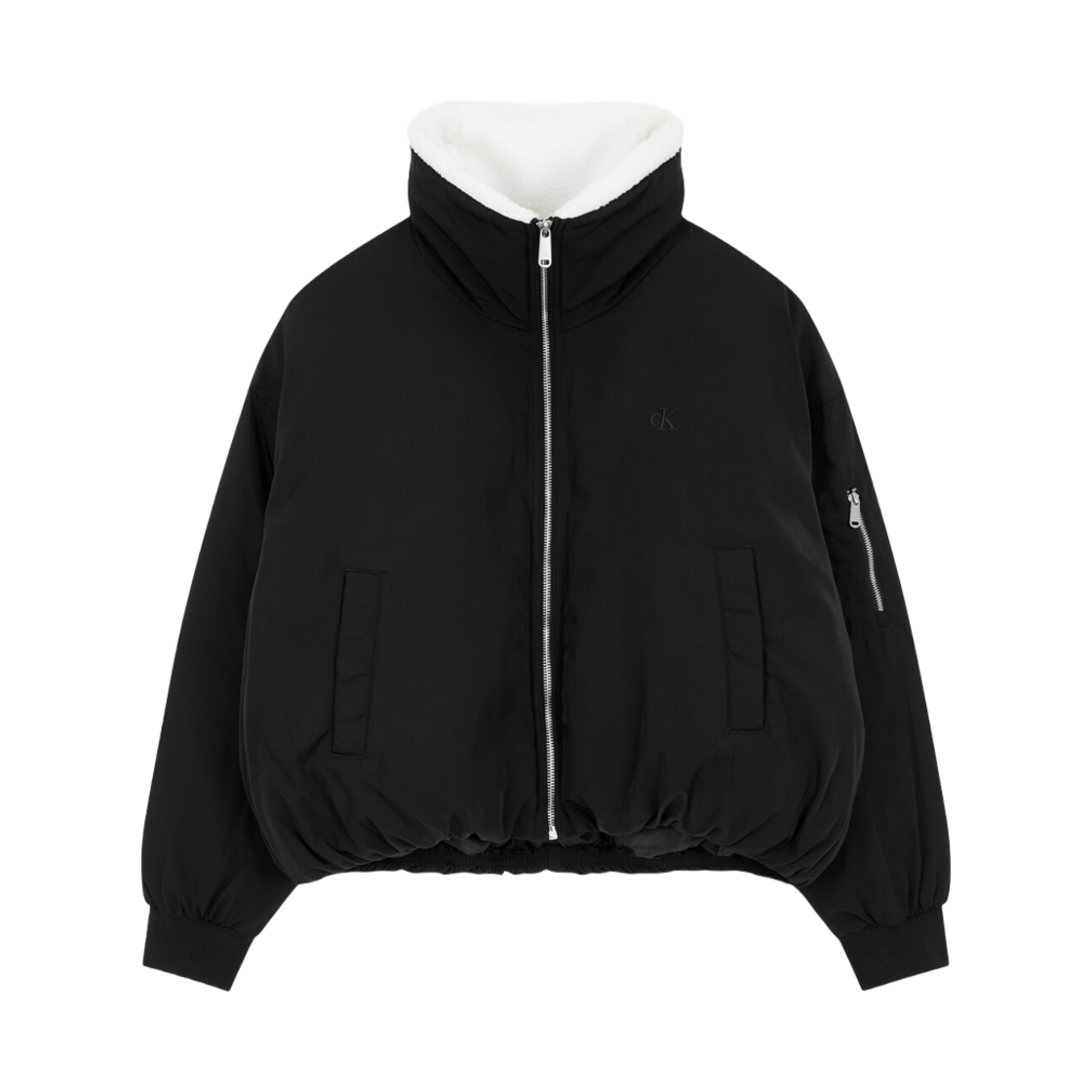 (W) 캘빈 클라인 숏 에비에이터 보머 다운 푸퍼 블랙