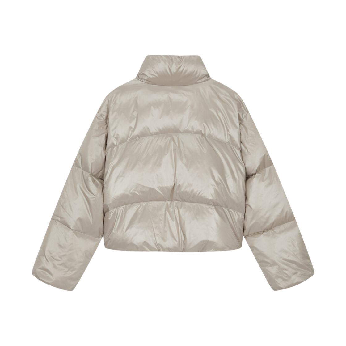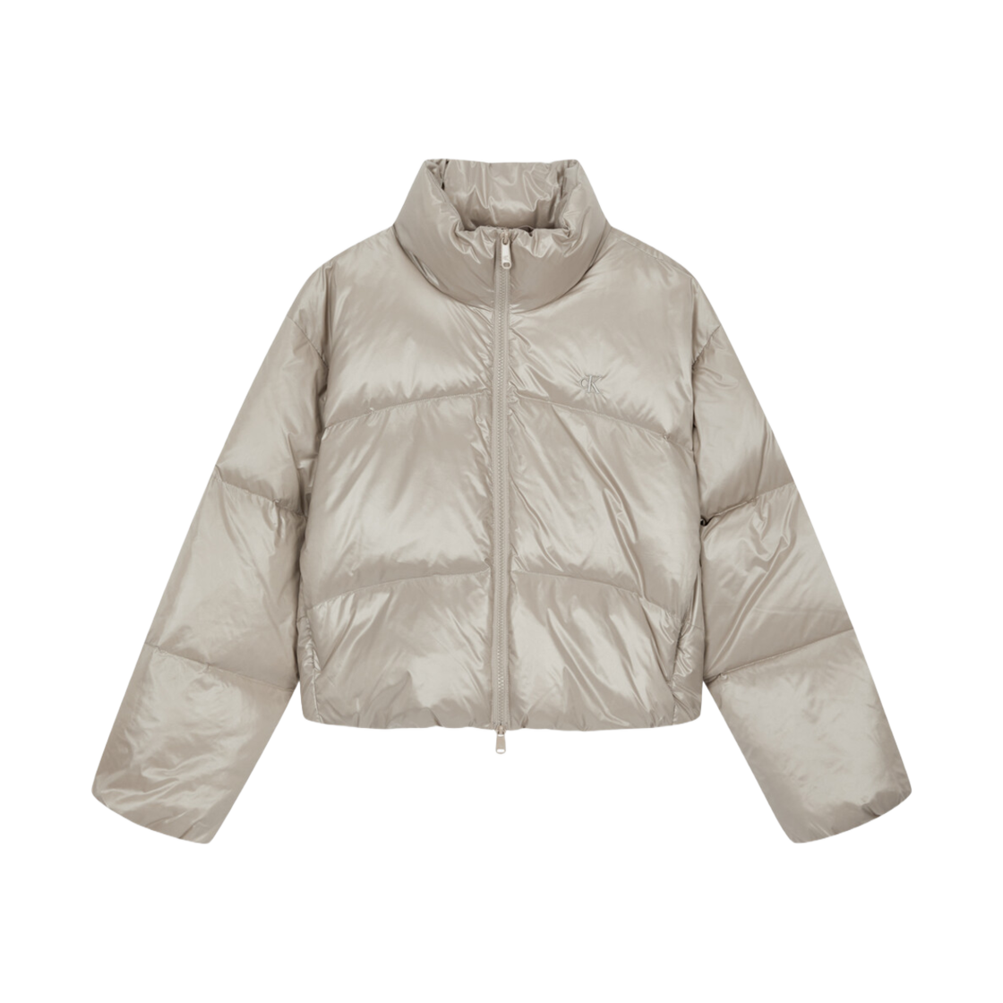 (W) 캘빈 클라인 크롭 글로시 커브드 퀼팅 다운 푸퍼 브라운