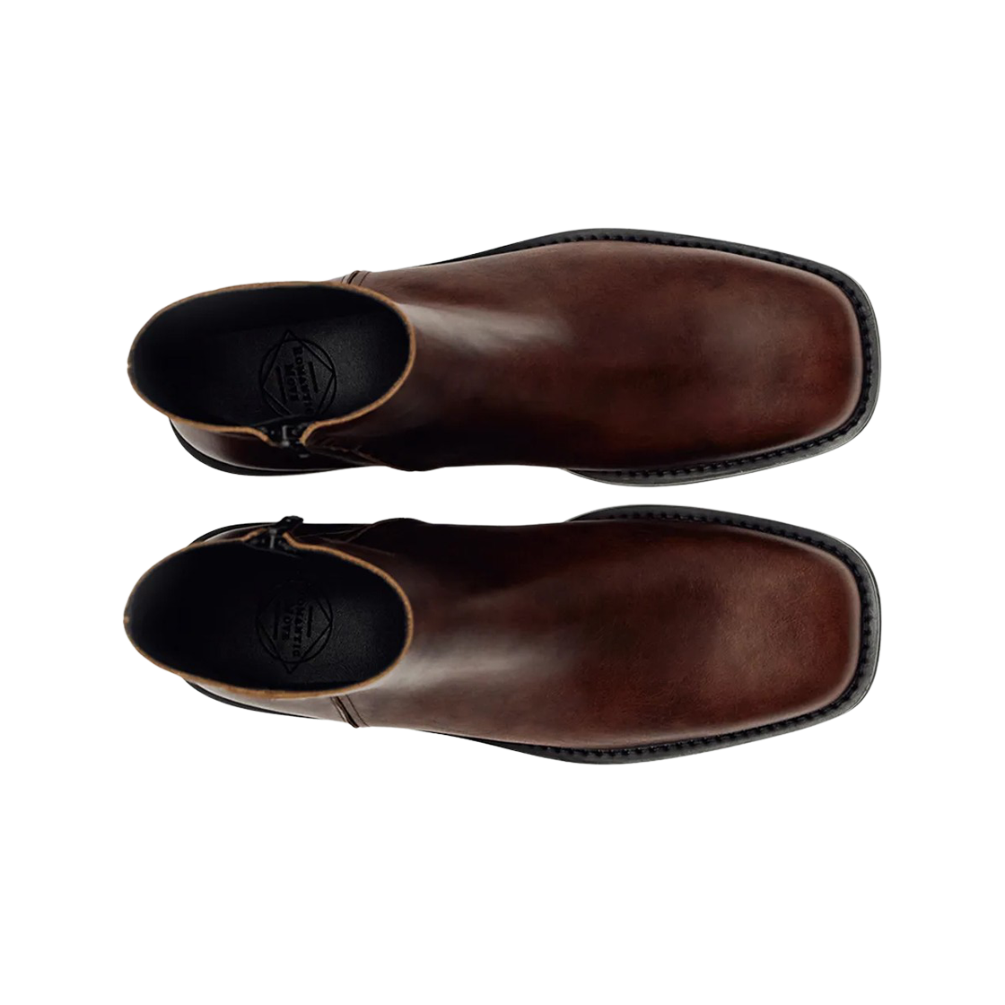 Romantic Move Minimal Square Toe Zip Up Boots Crack Brown